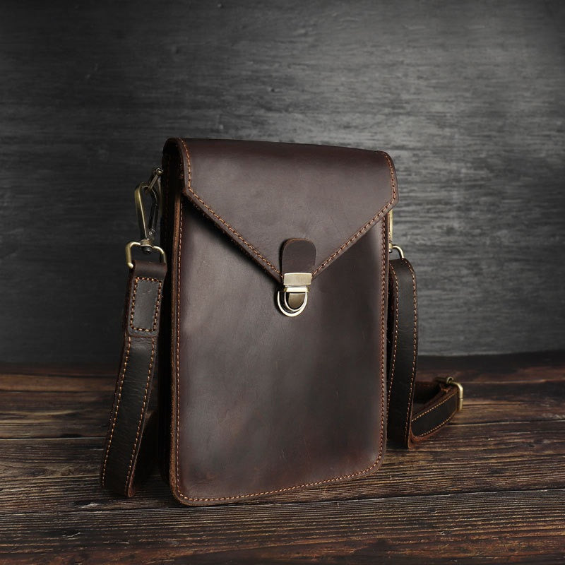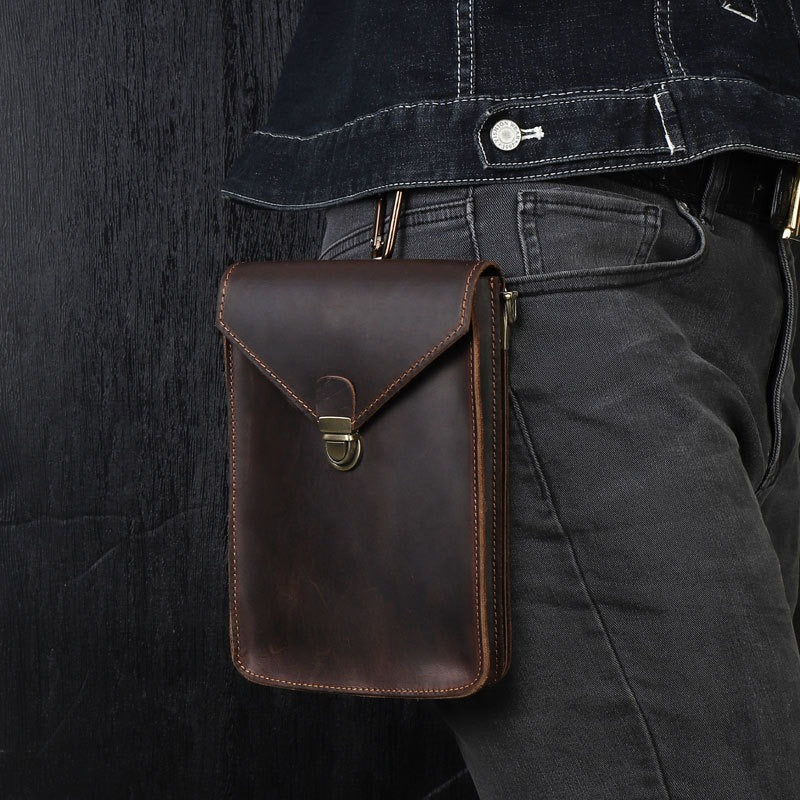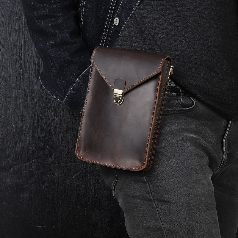 Design: Black Slim Belt Pouch Leather Shoulder Bag Mens Waist Bag Black Crossbody Bag for Men