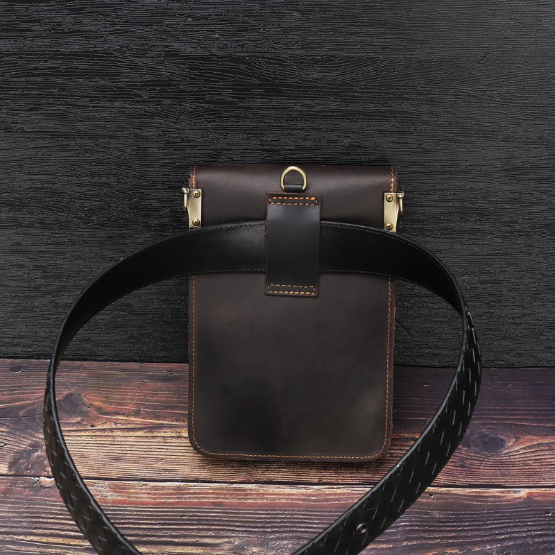 Style: Black Slim Belt Pouch Leather Shoulder Bag Mens Waist Bag Black Crossbody Bag for Men
