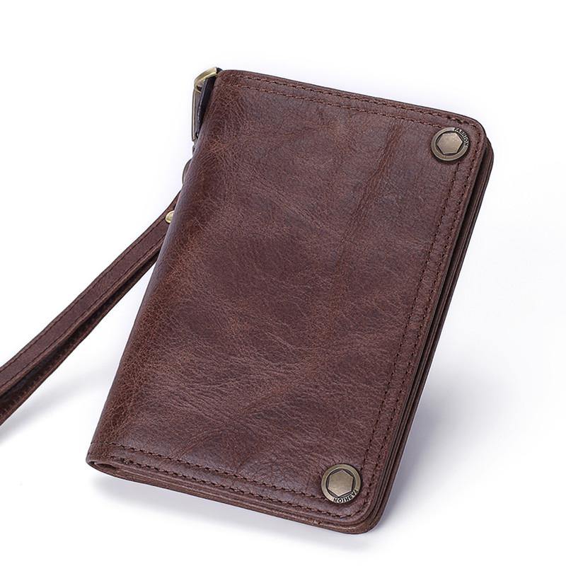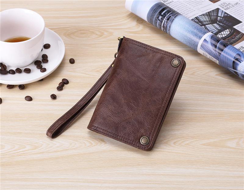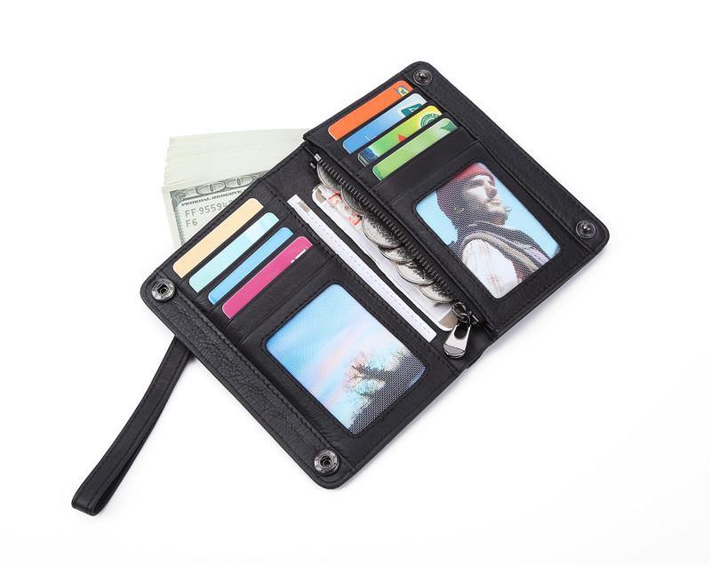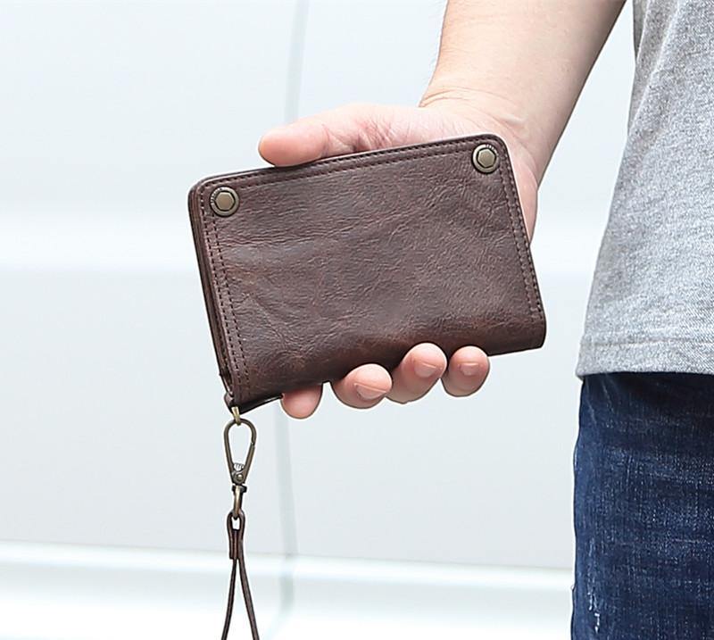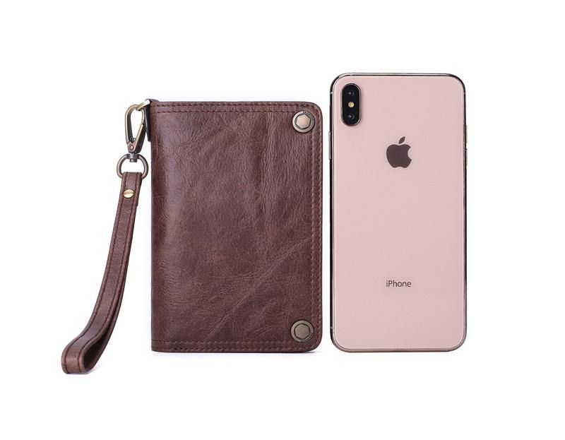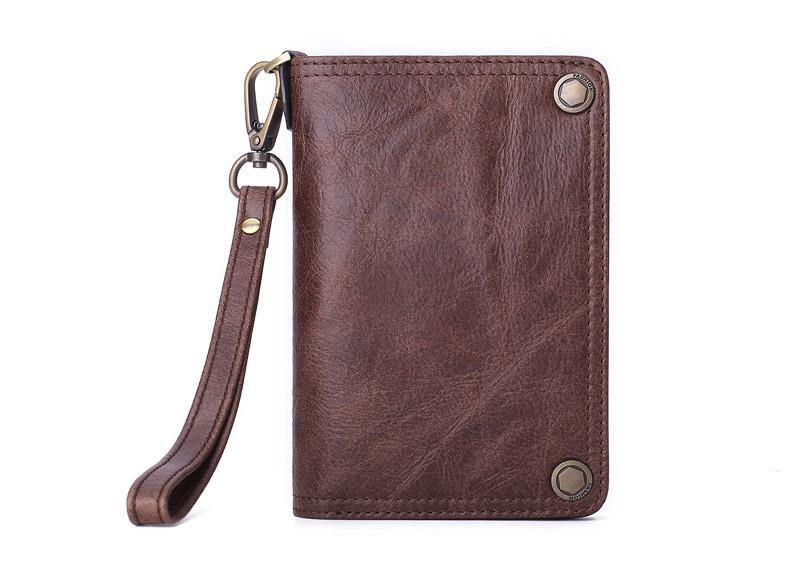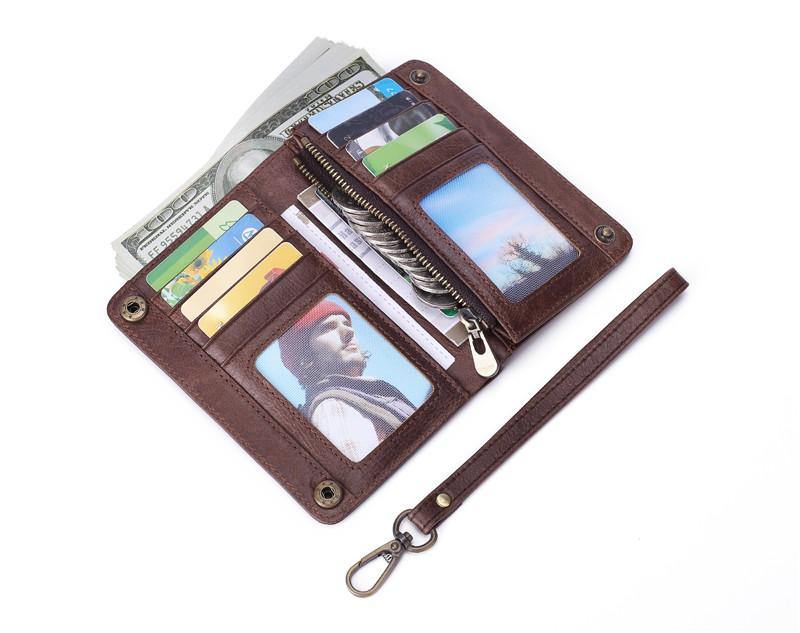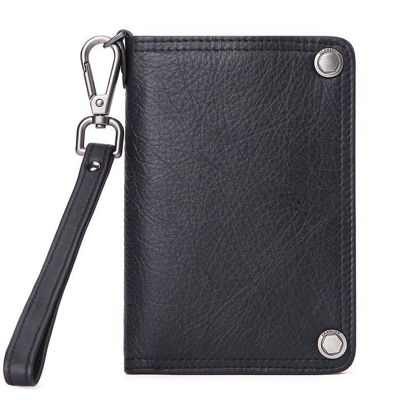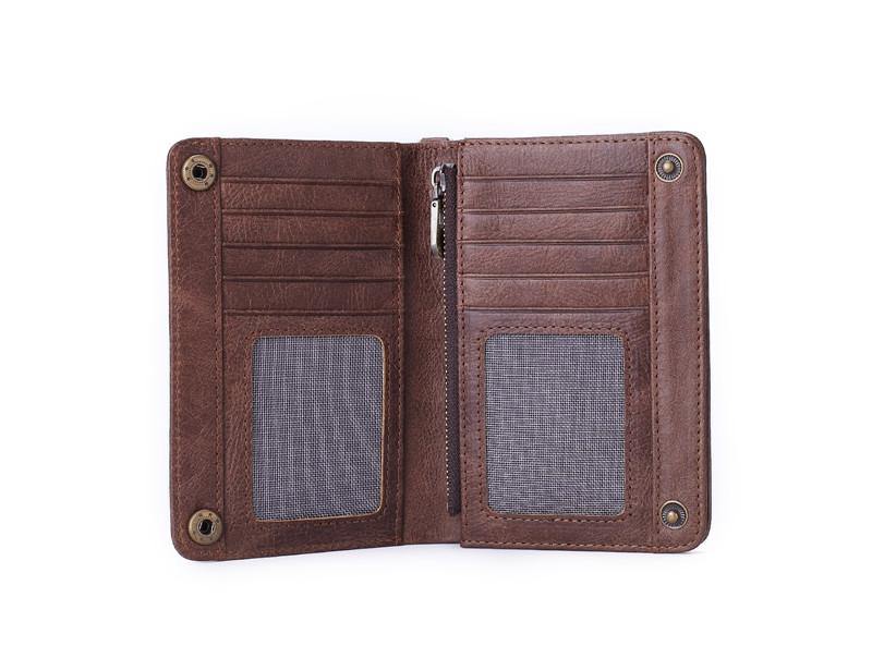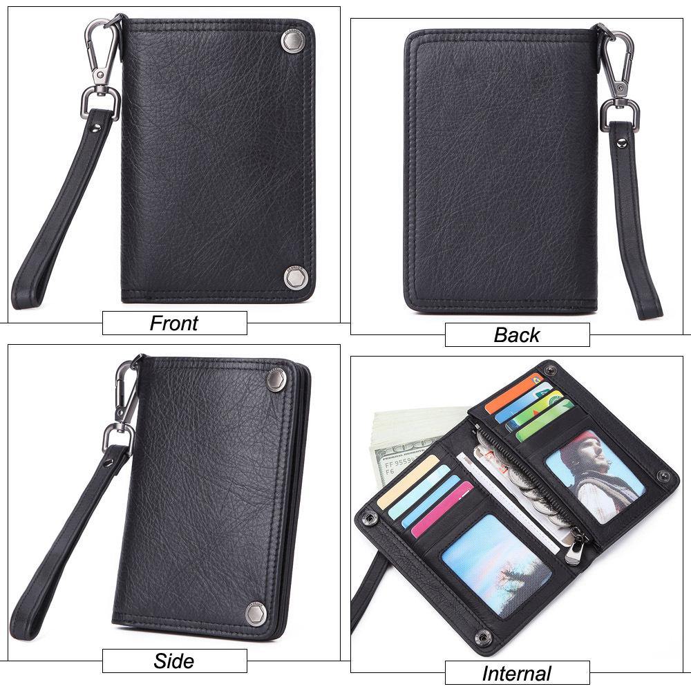Design: Small Mens Chain Wallet Leather Bifold Wallet Vertical Wristlet Wallet For Men