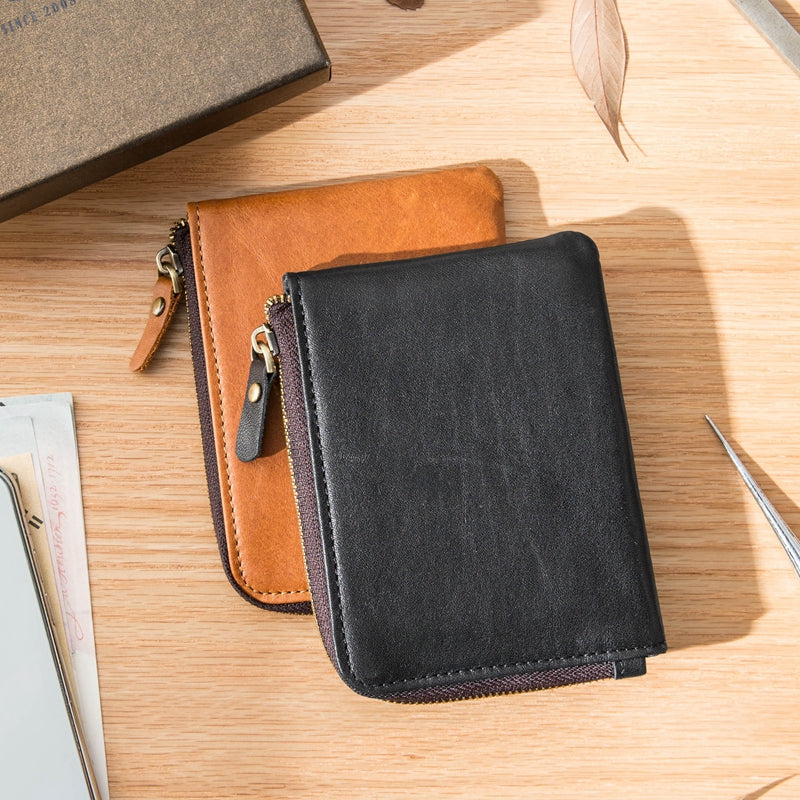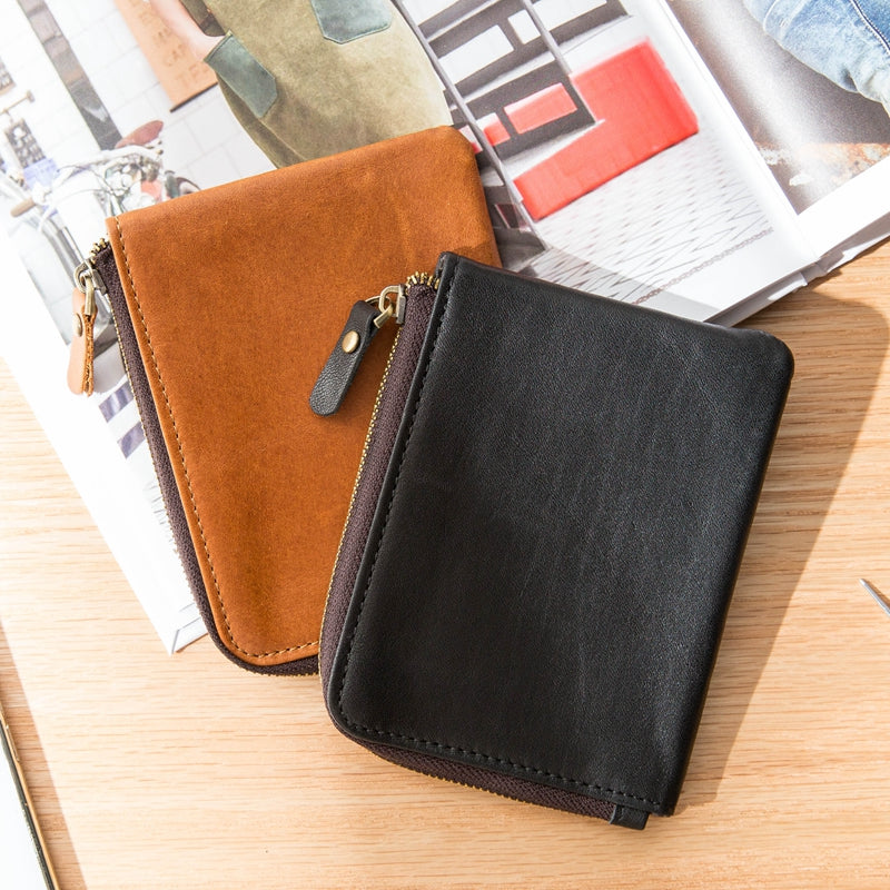 Design: Black Soft Leather Mens Small Wallet Brown Coin Purse Wallet Ultra Thin billfold Wallet for Men