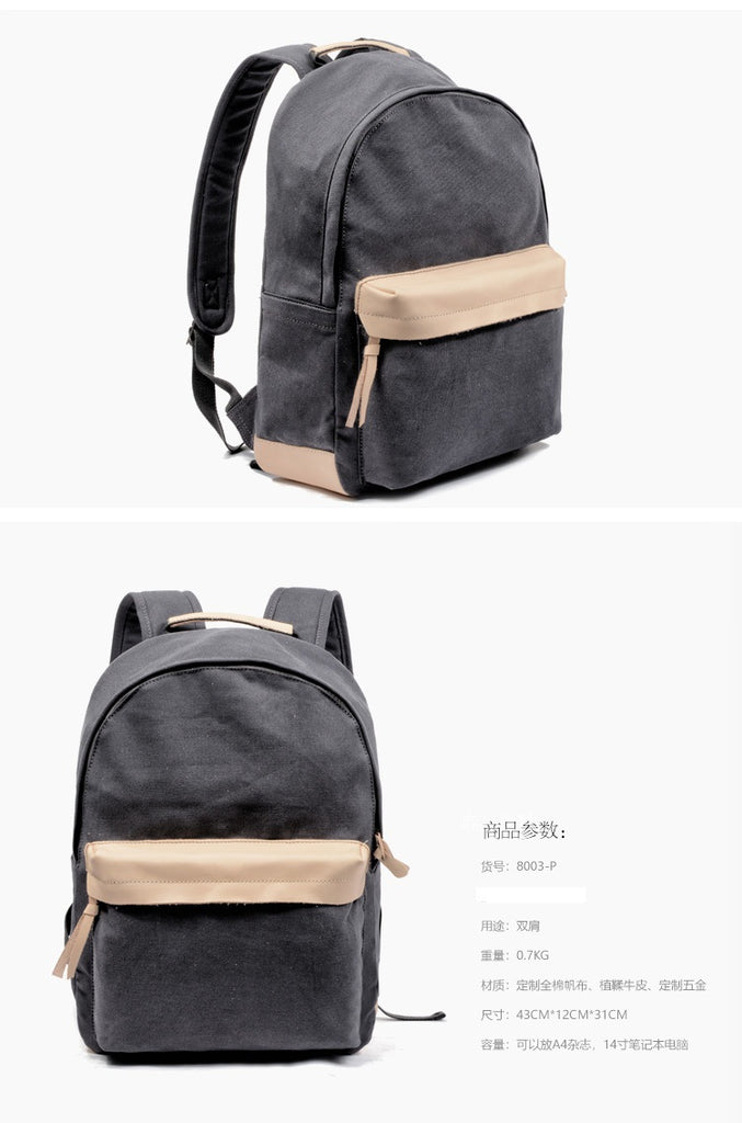 Design: Black Waxed Canvas Satchel Backpack Canvas Mens School Backpack Waterproof Hiking Backpack For Men