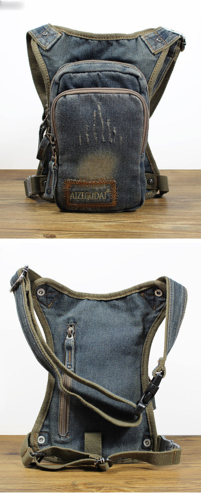 Design: Mens Denim Thigh Bag Fanny Pack for Men Drop Leg Bag Blue Denim Bum Bag Waist Bags