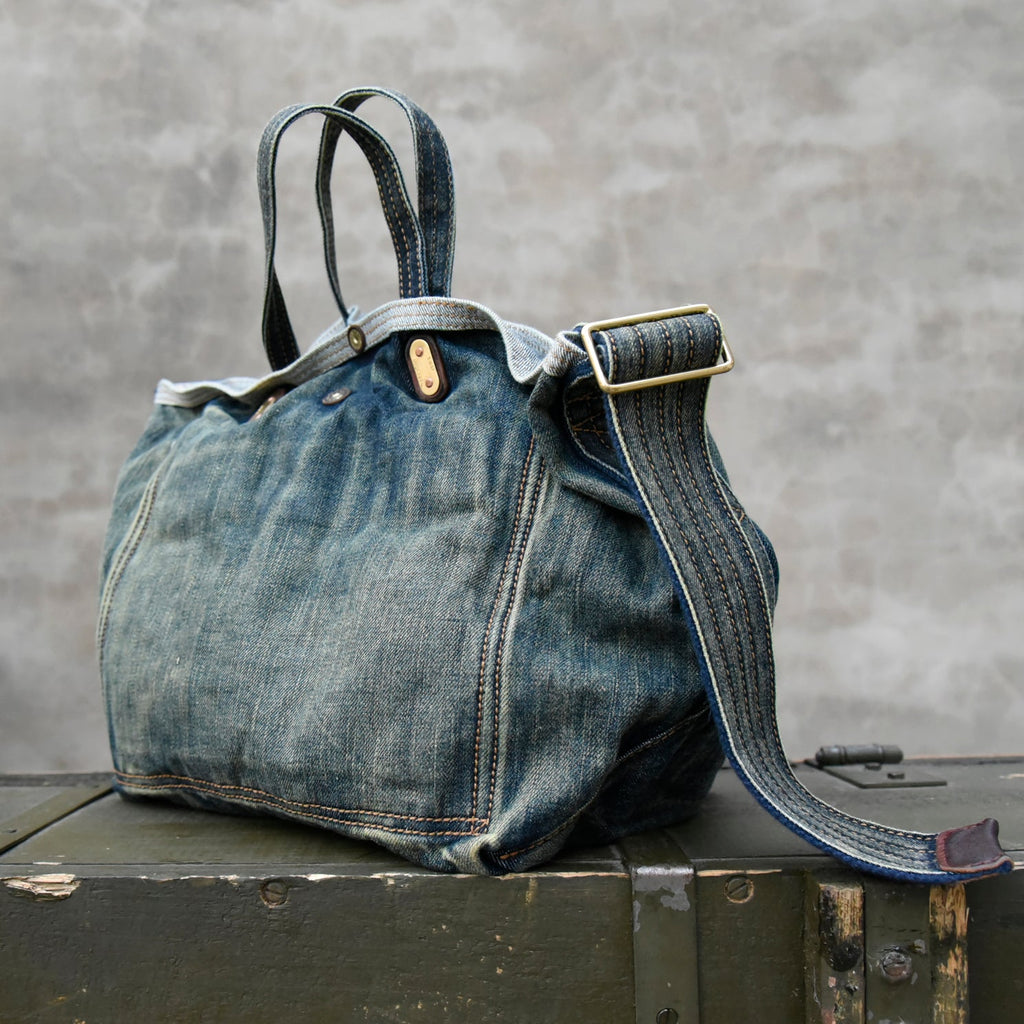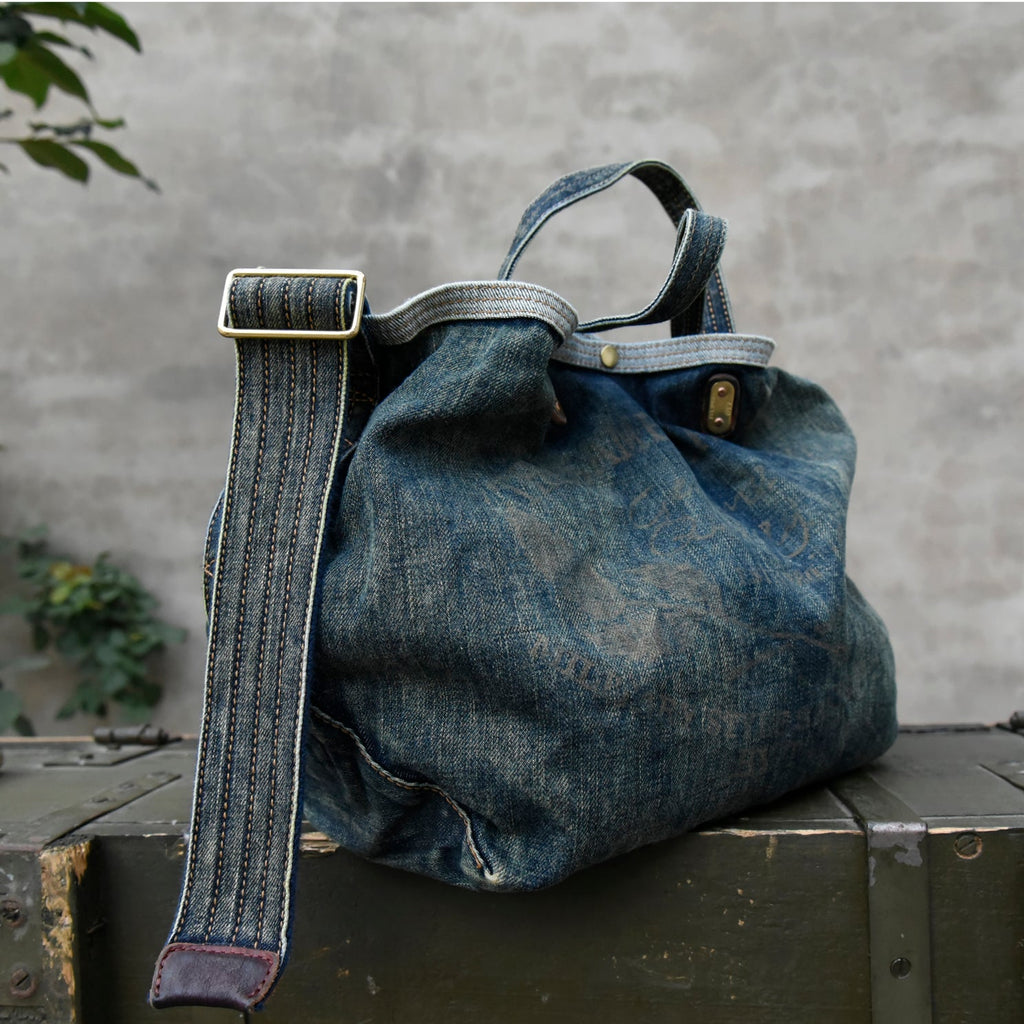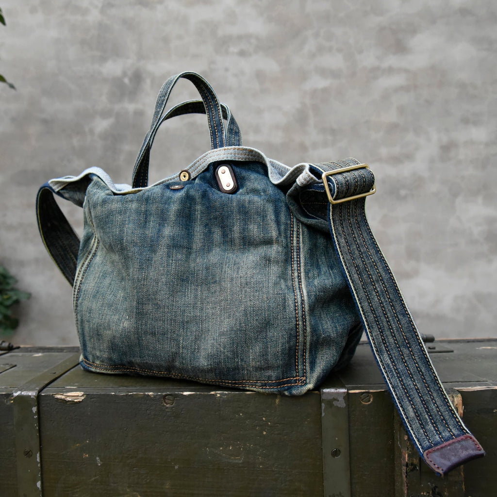 Style: Blue Denim Tote Handbag Denim Tote Bag Distressed Denim Tote Shoulder Bag