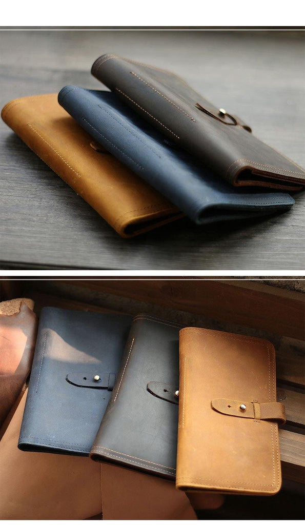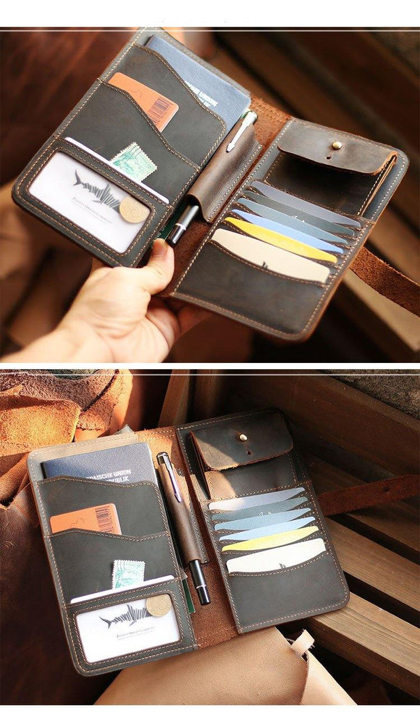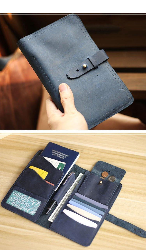 Design: Blue Handmade Leather Mens Passport Holder Muticard Wallet Ticket Holder For Men