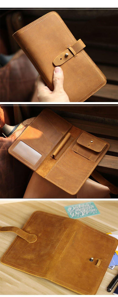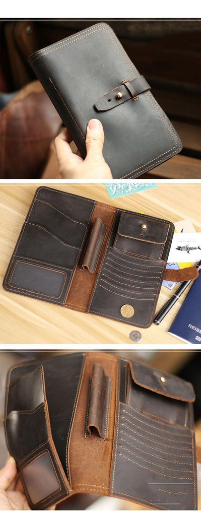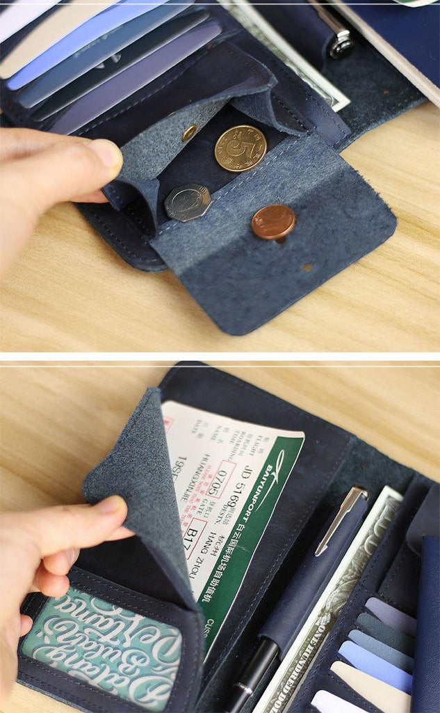 Style: Blue Handmade Leather Mens Passport Holder Muticard Wallet Ticket Holder For Men