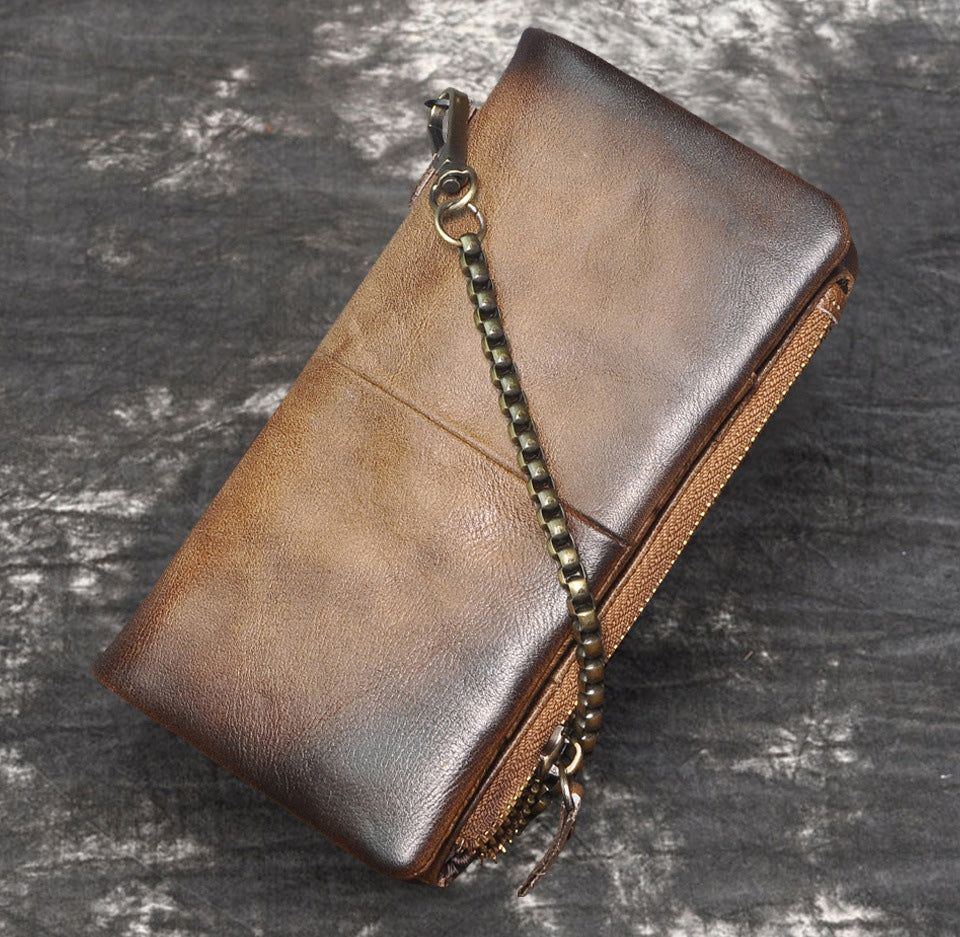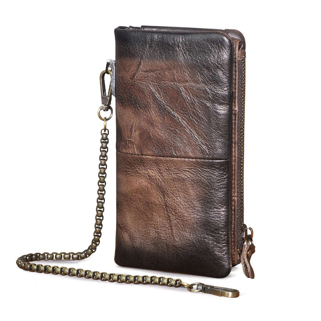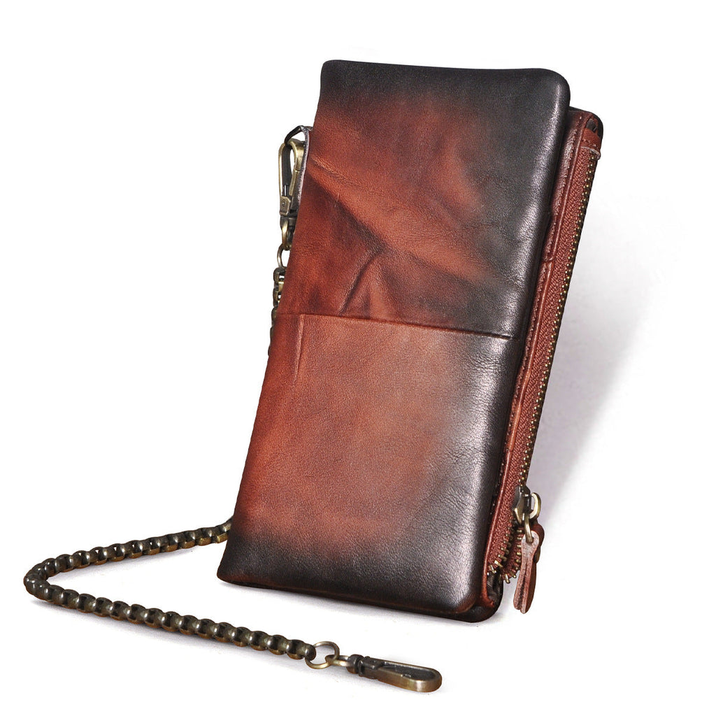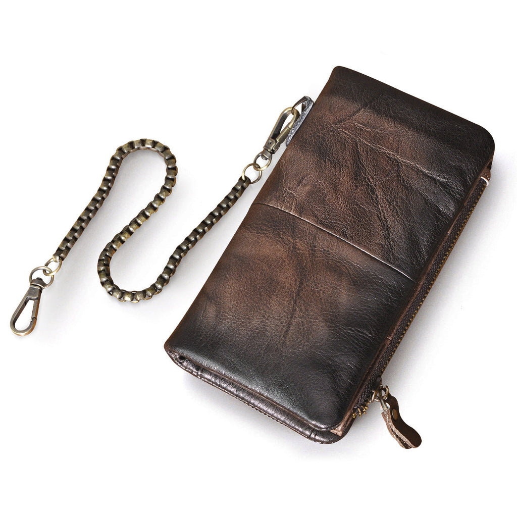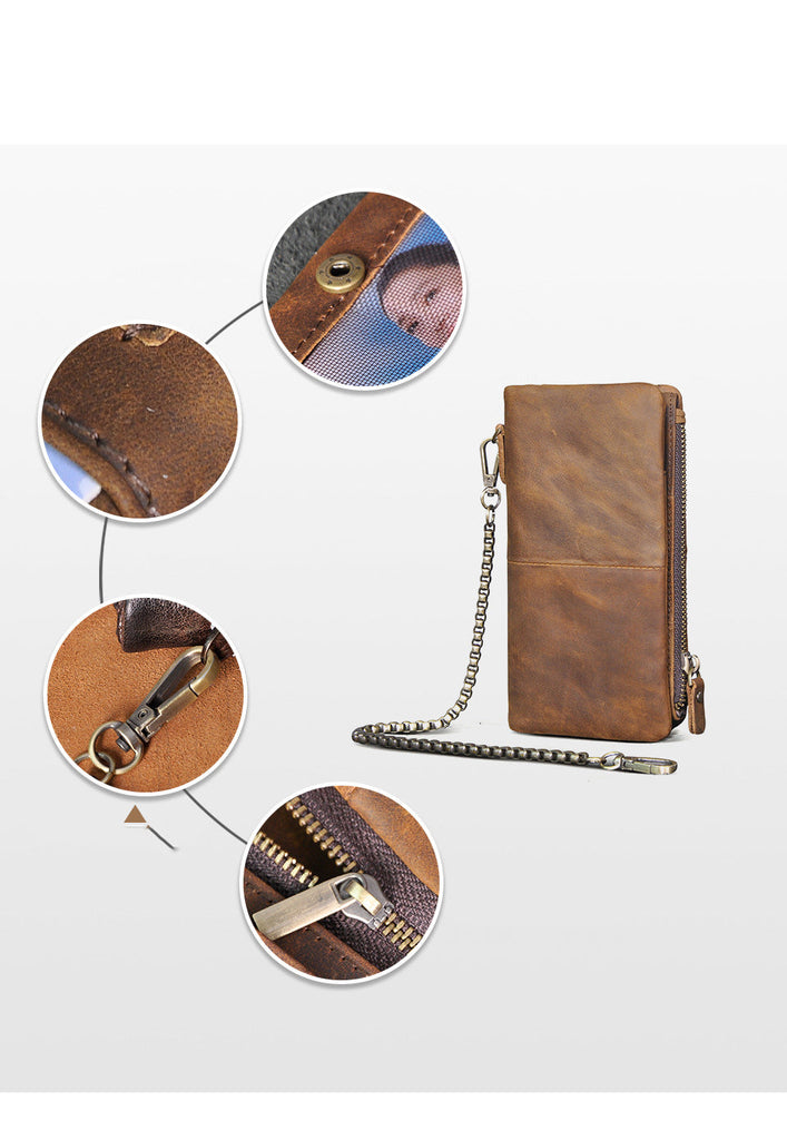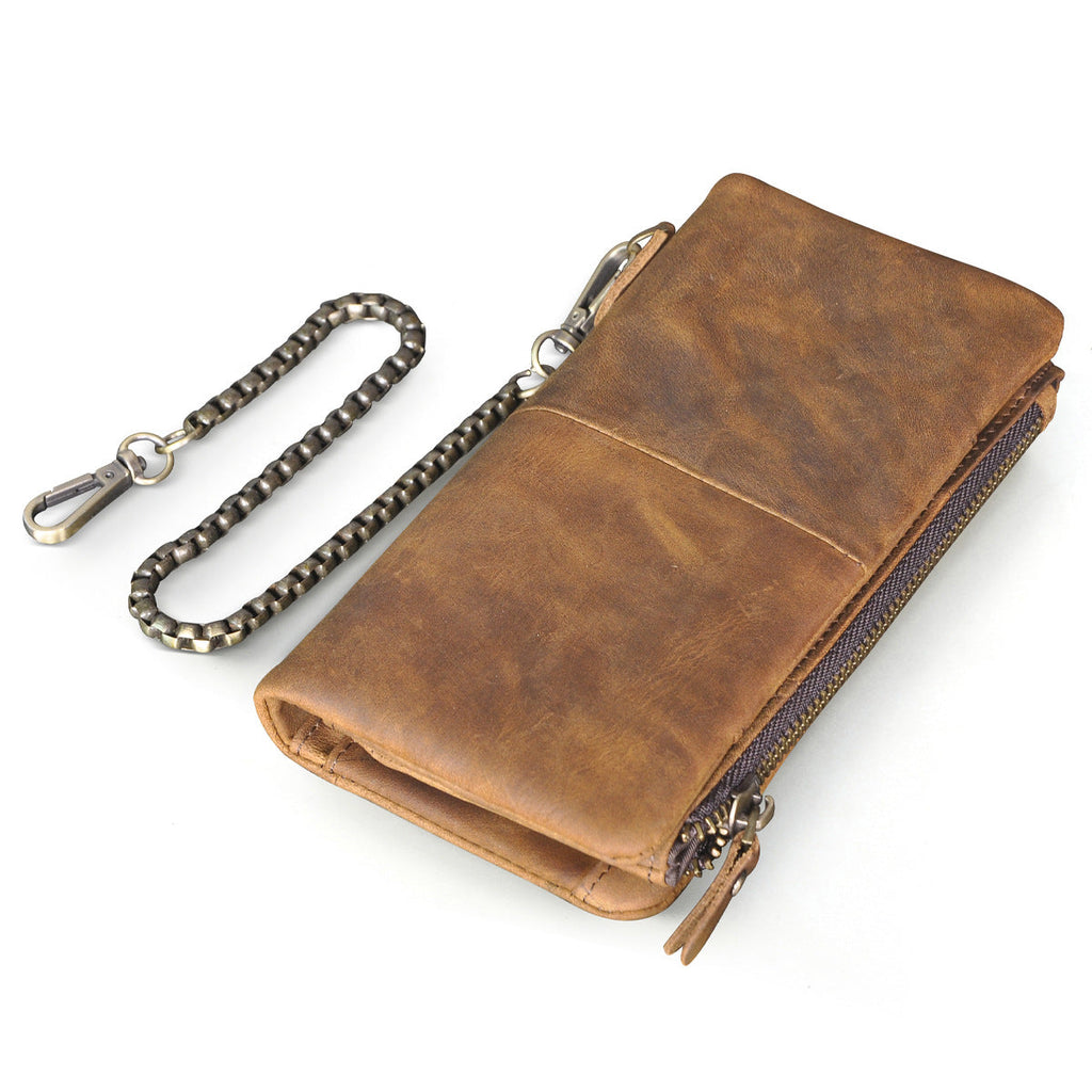 Design: Cool Leather Men's Biker Chain Wallet Trifold Biker Long Wallet with Chain For Men