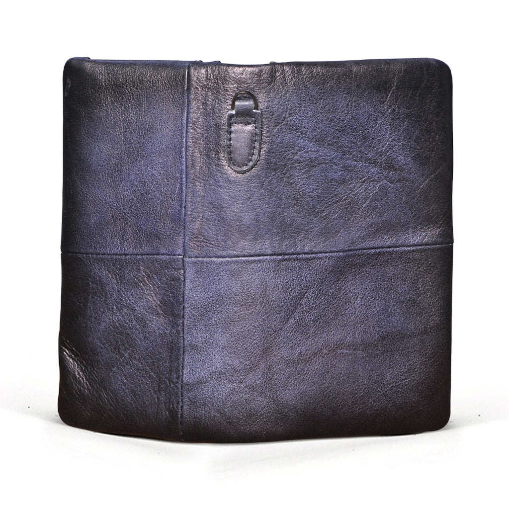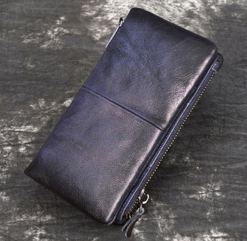 Blue Leather Men's Biker Chain Wallet Cool Trifold Biker Long Wallet with Chain For Men