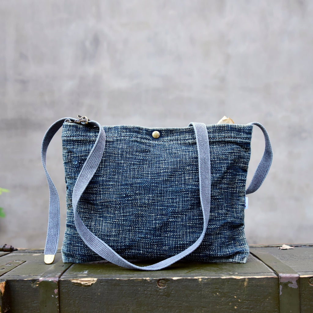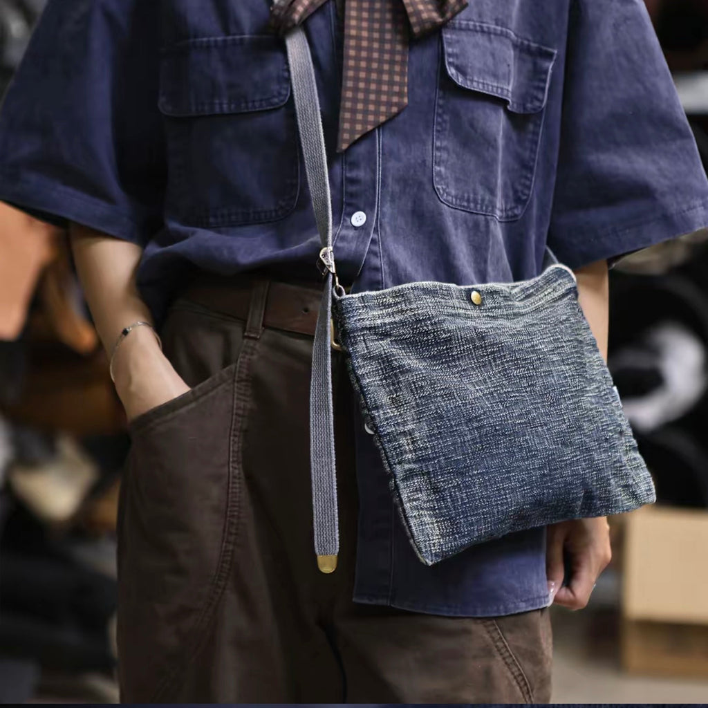 Design: Blue Small Denim Crossbody Bag for Men Small Messenger Bag Womens Jeans Shoulder Bag