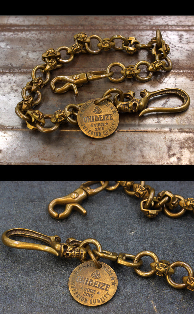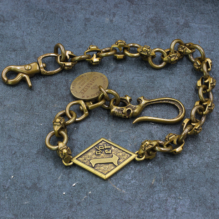 Design: Badass Skull Brass Biker Wallet Chain 1%er Wallet chain gold pants chain For Men