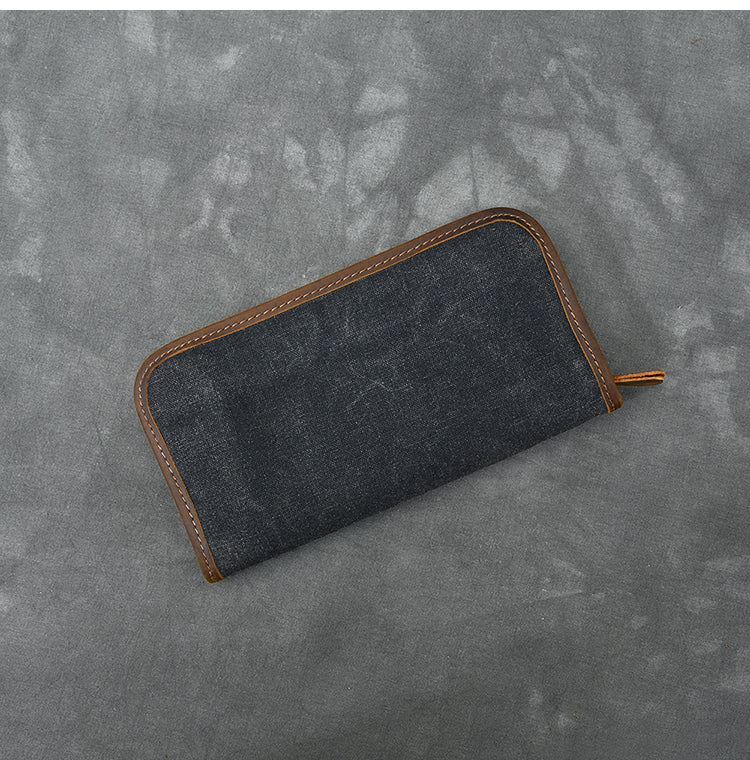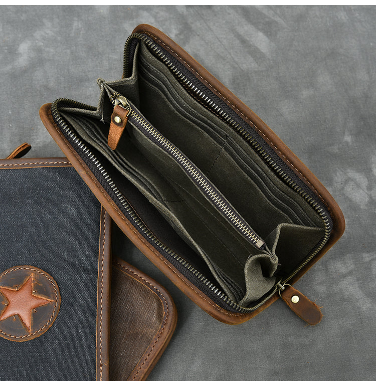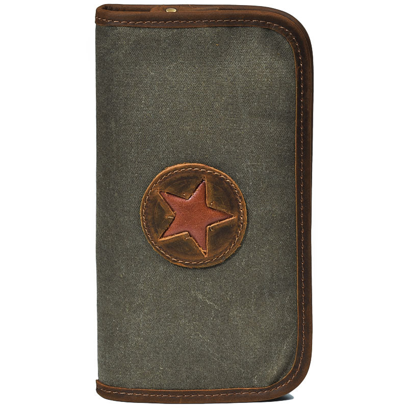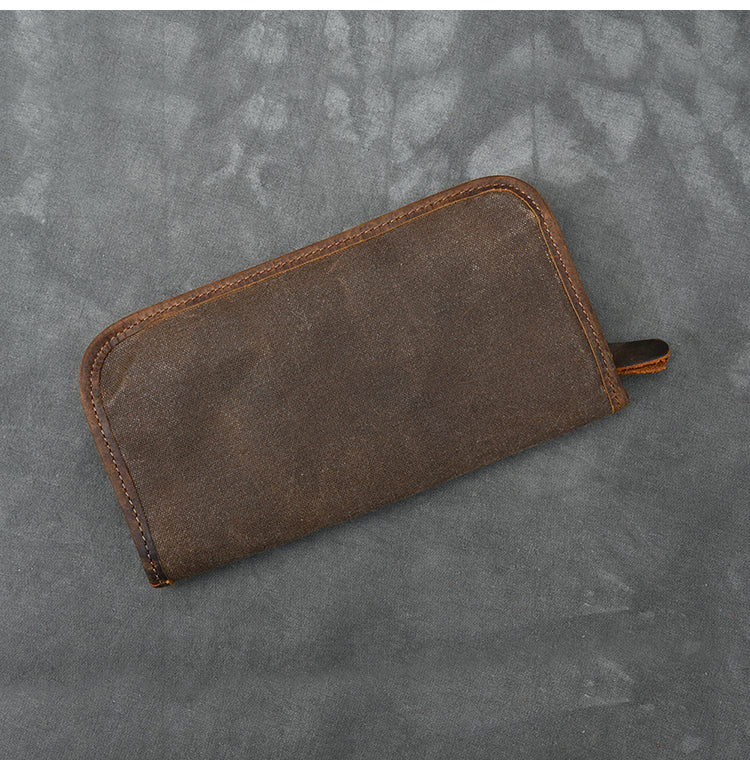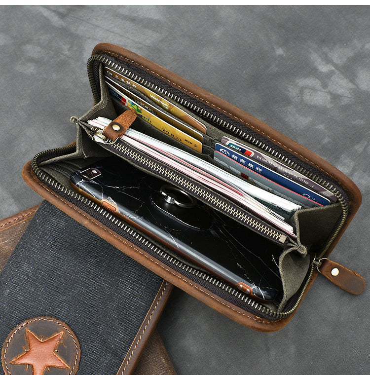 Style: Brown Canvas Leather Mens Long Wallet Army Green Large Clutch Phone Case For Men