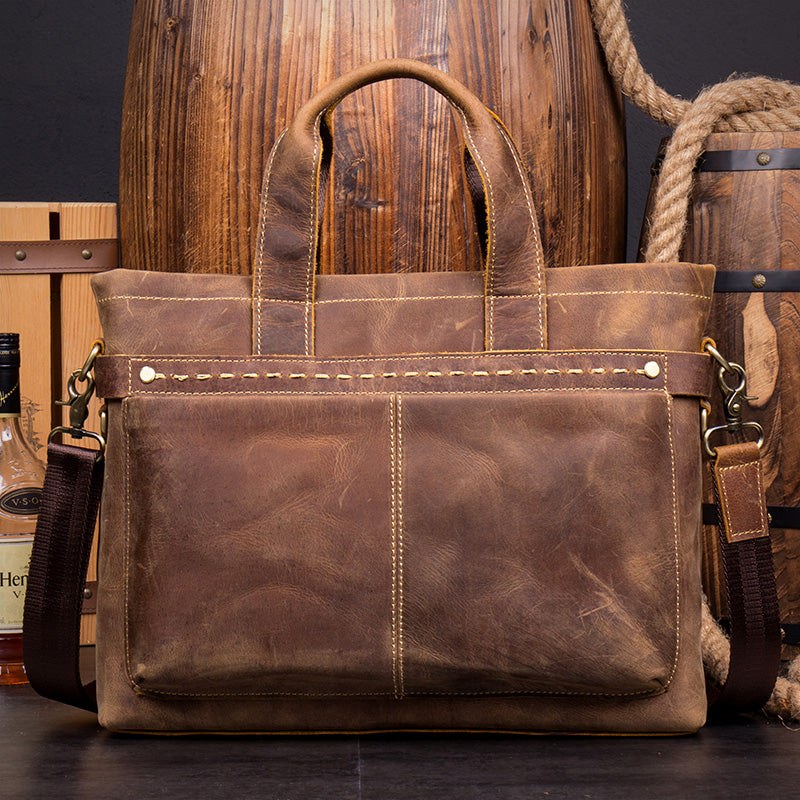 Design: Brown Casual Leather 15 inches Shoulder Bags Messenger Bags Crossbody Bags for Men