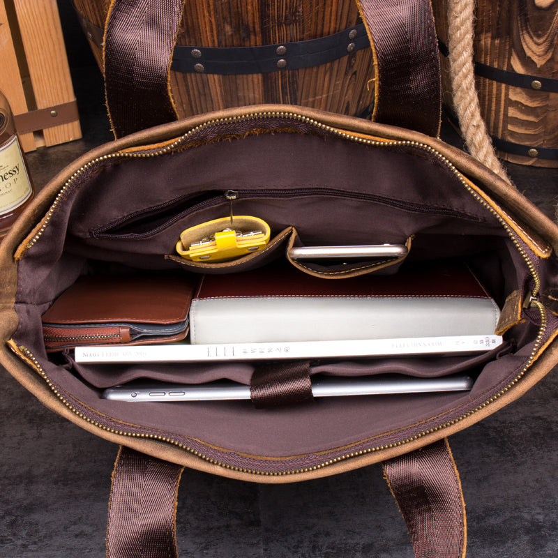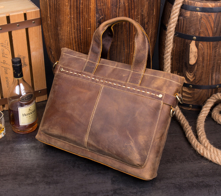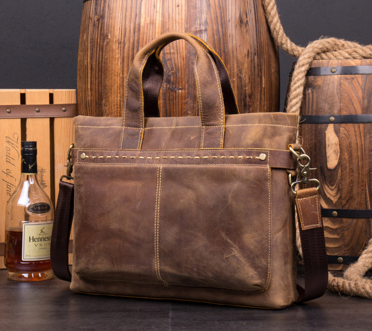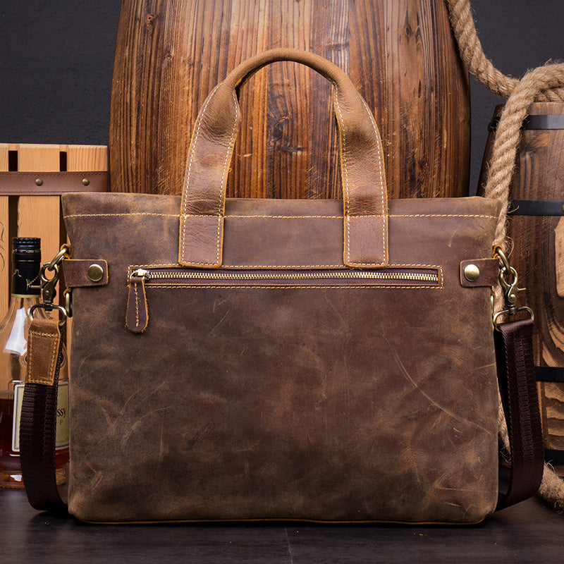 Casual Brown Leather 15 inches Laptop Briefcase Work Side Bag Work Handbag for Men
