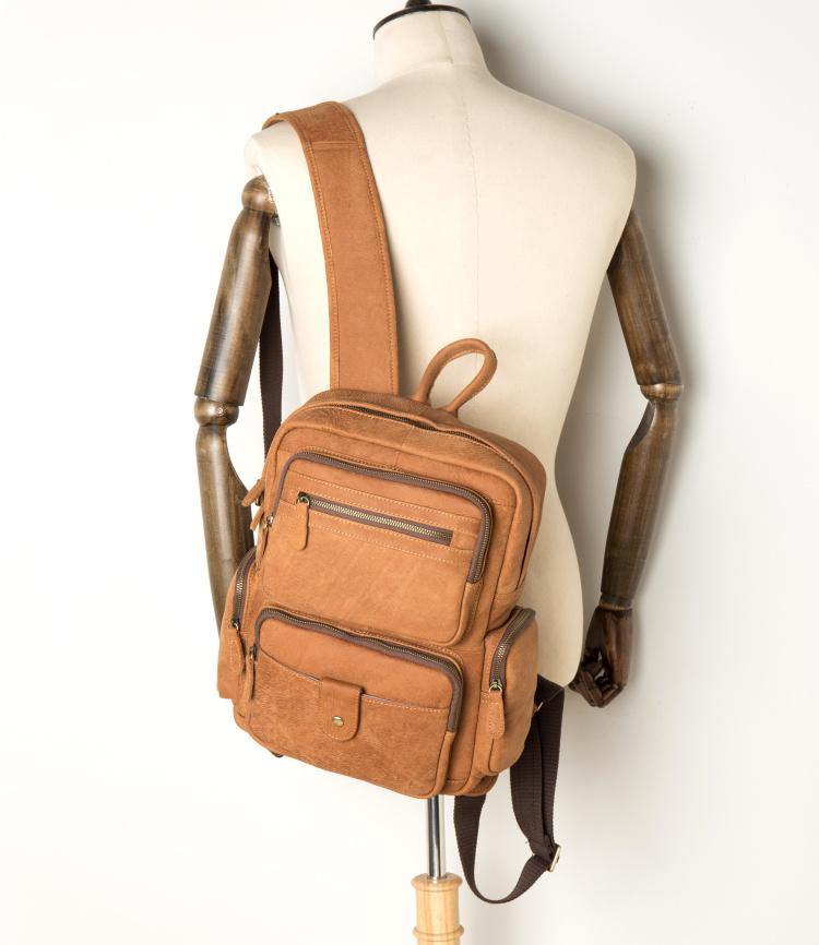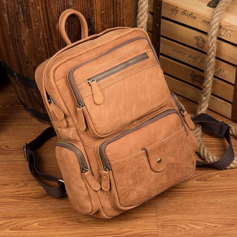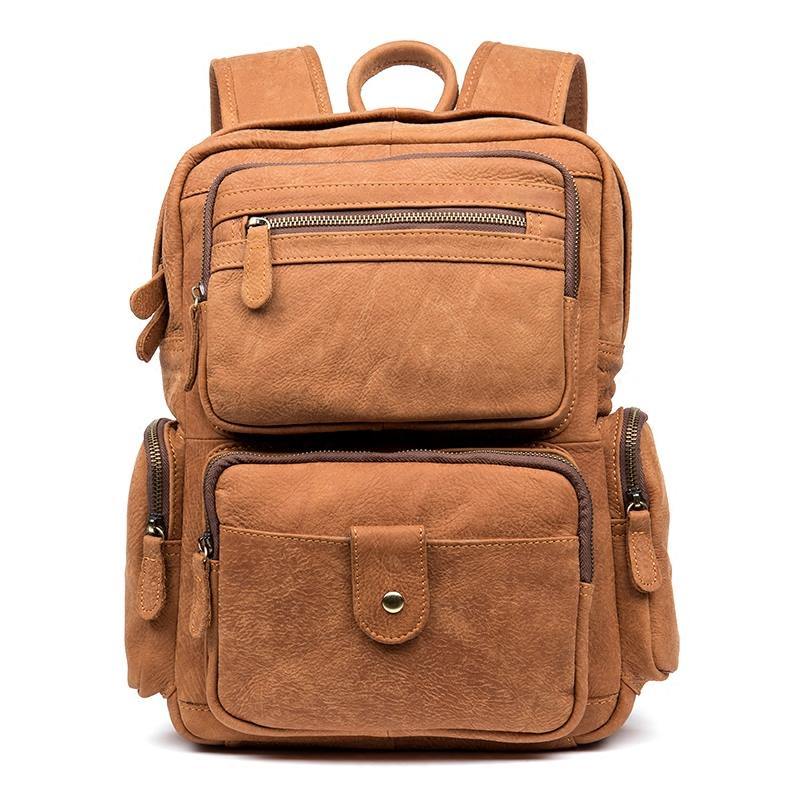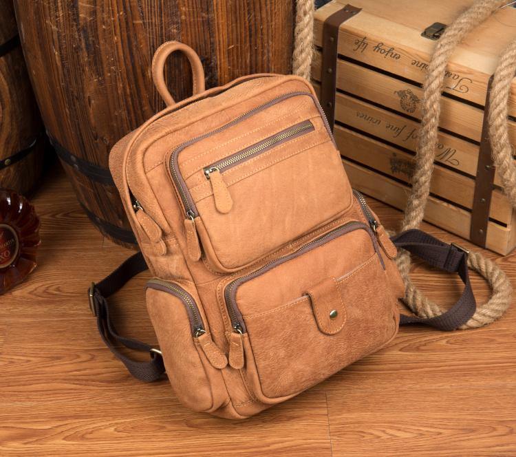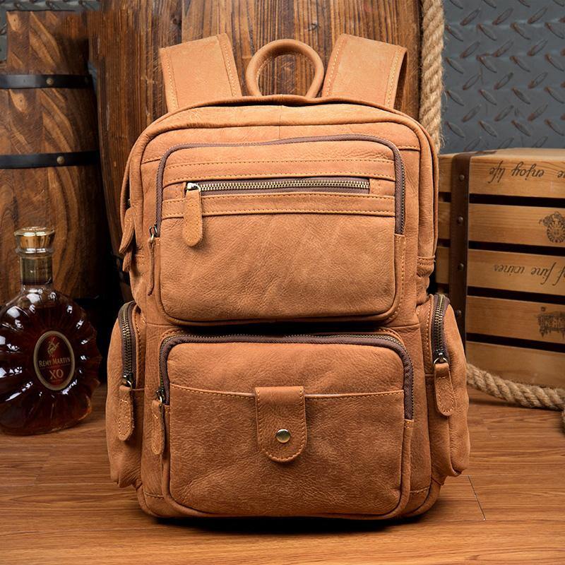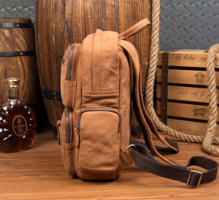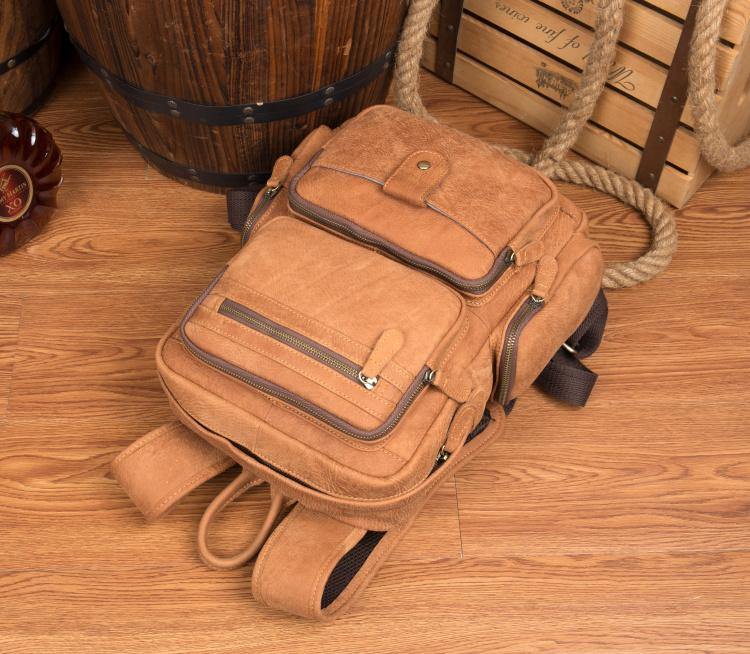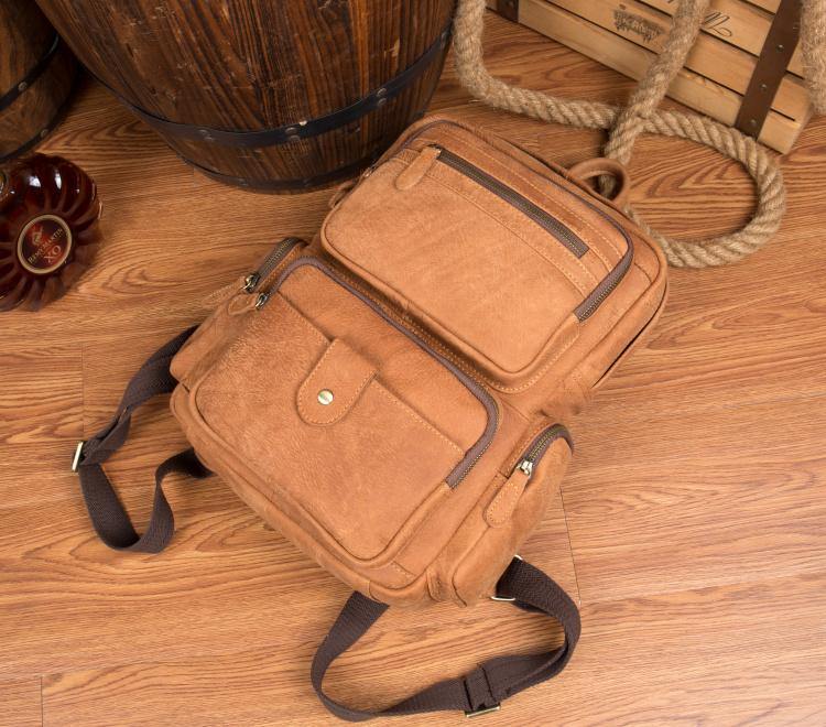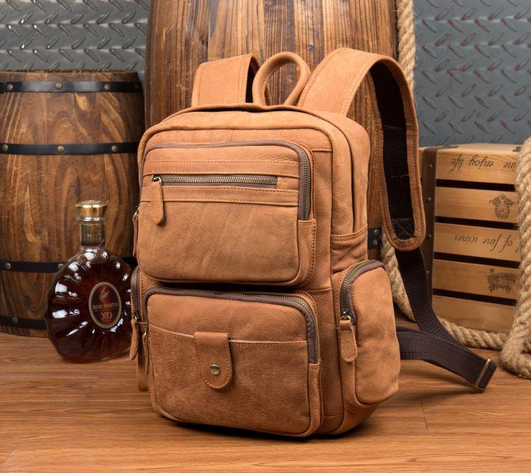 Design: Brown Casual Leather Mens 13 inches Travel Backpacks Computer Backpack for Men