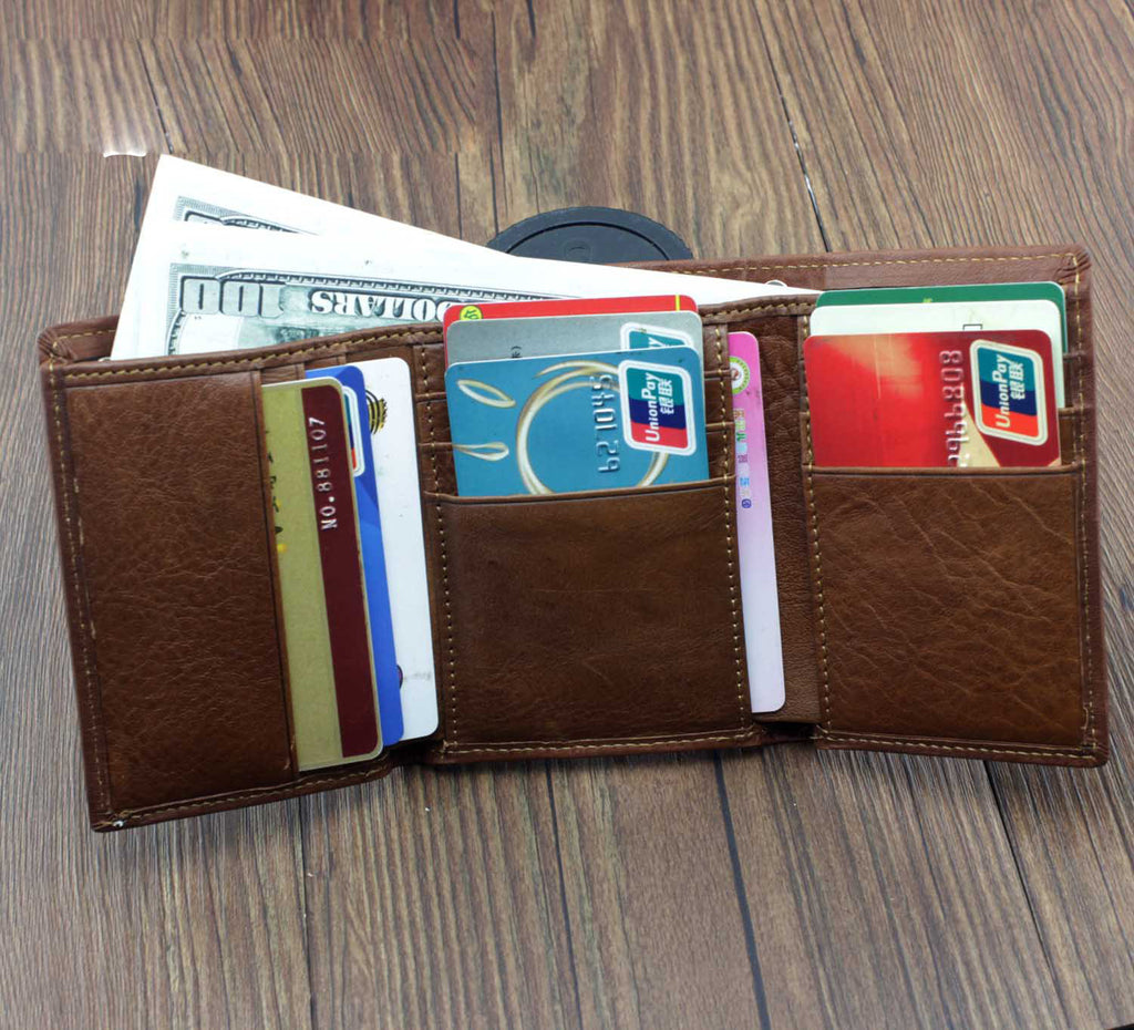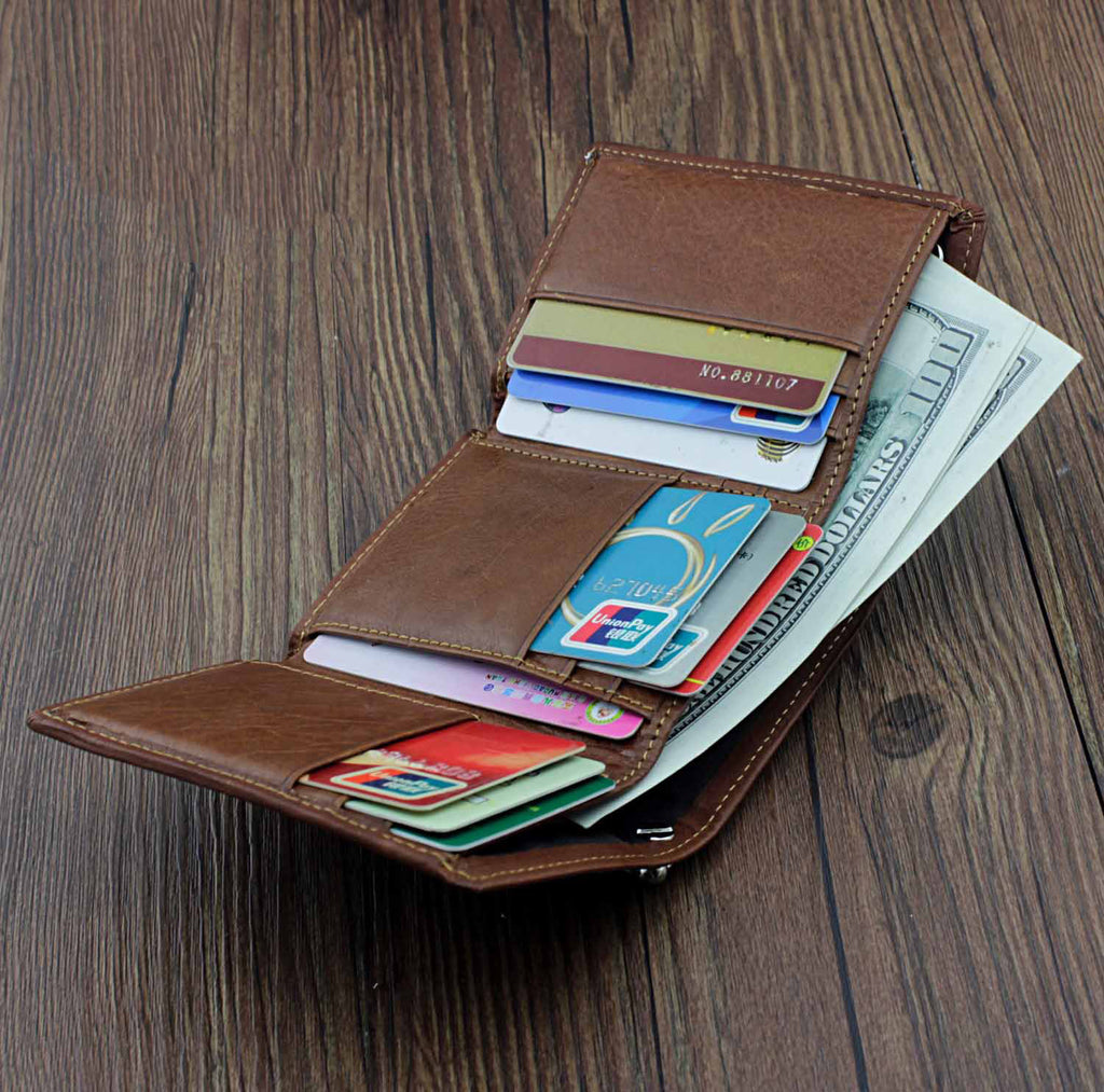 Design: BADASS BROWN LEATHER MENS TRIFOLD SMALL BIKER WALLET CHAIN WALLET WALLET WITH CHAIN FOR MEN
