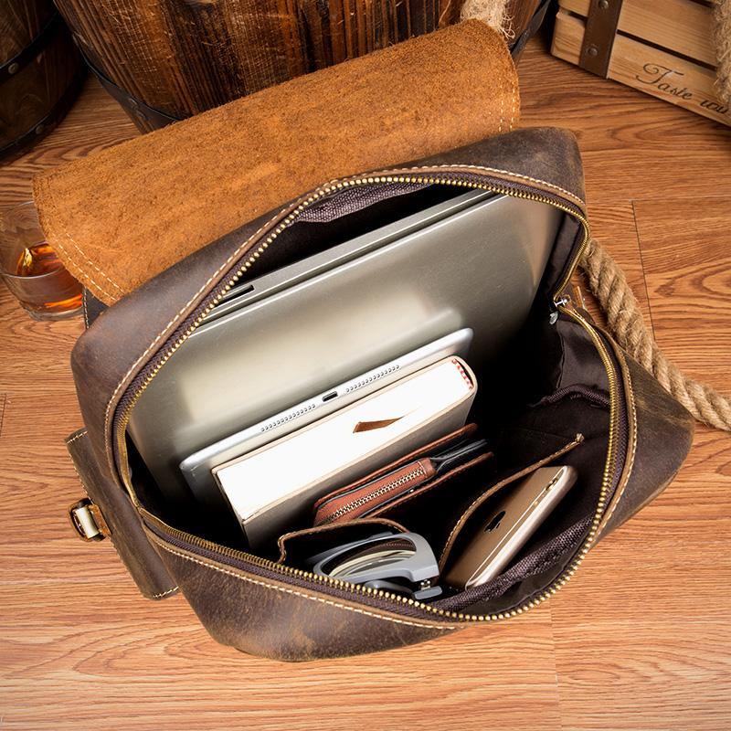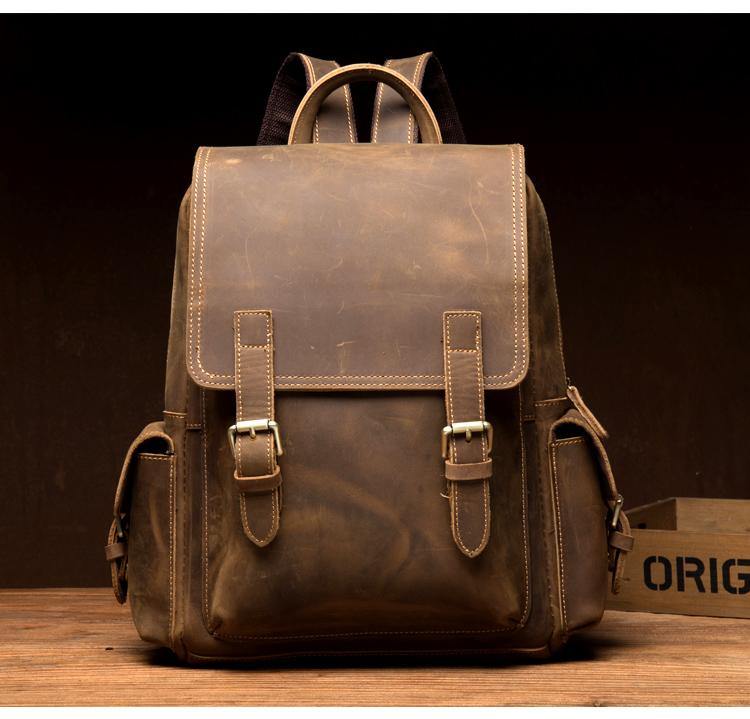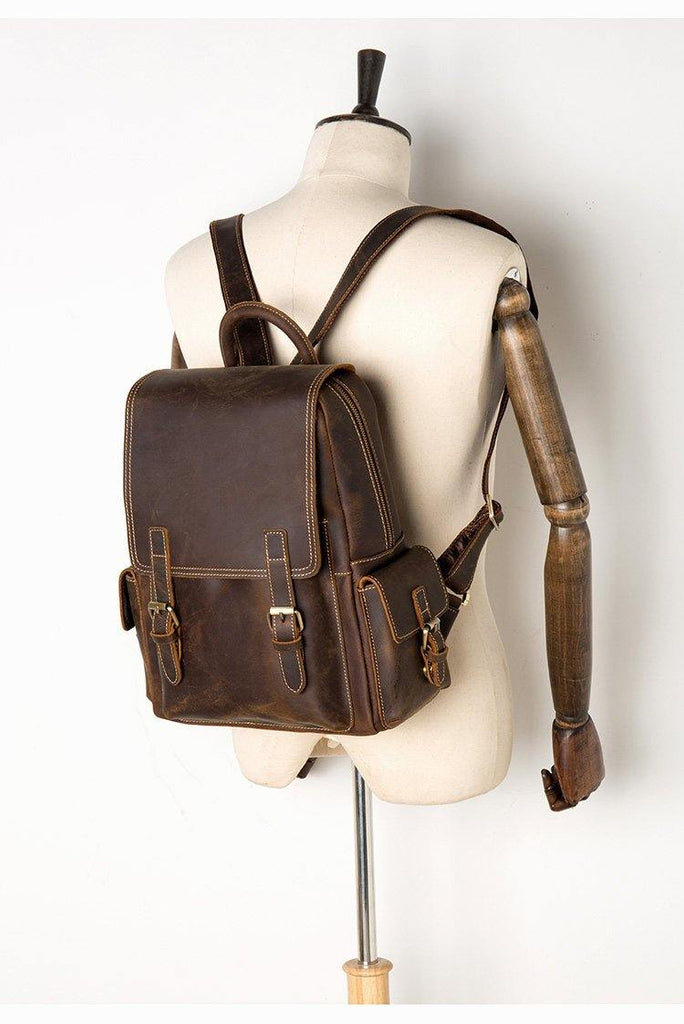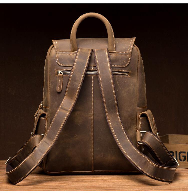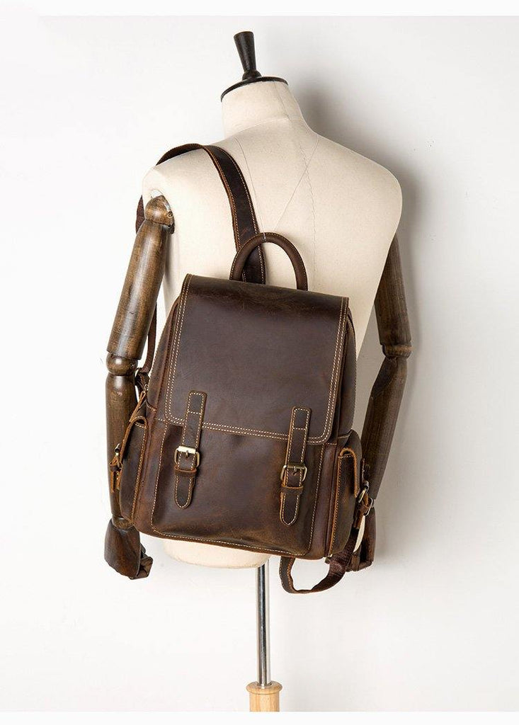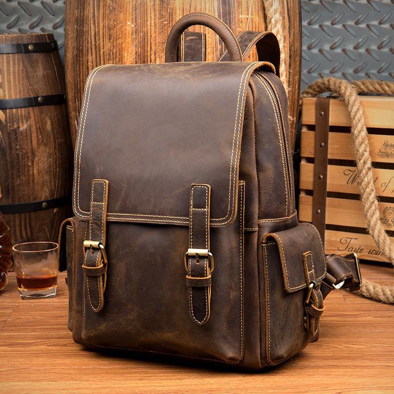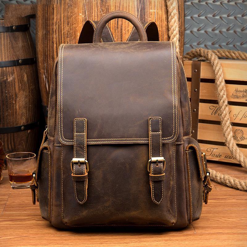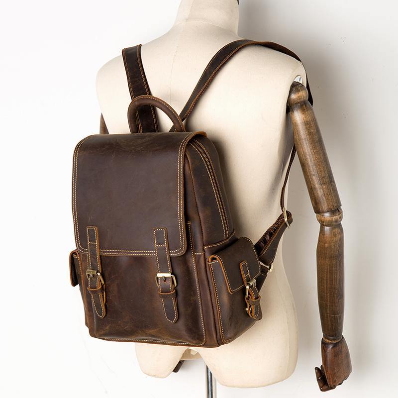 Style: Brown Casual Mens Leather 14-inch Computer Backpack Dark Brown Travel Backpacks School Backpacks for men