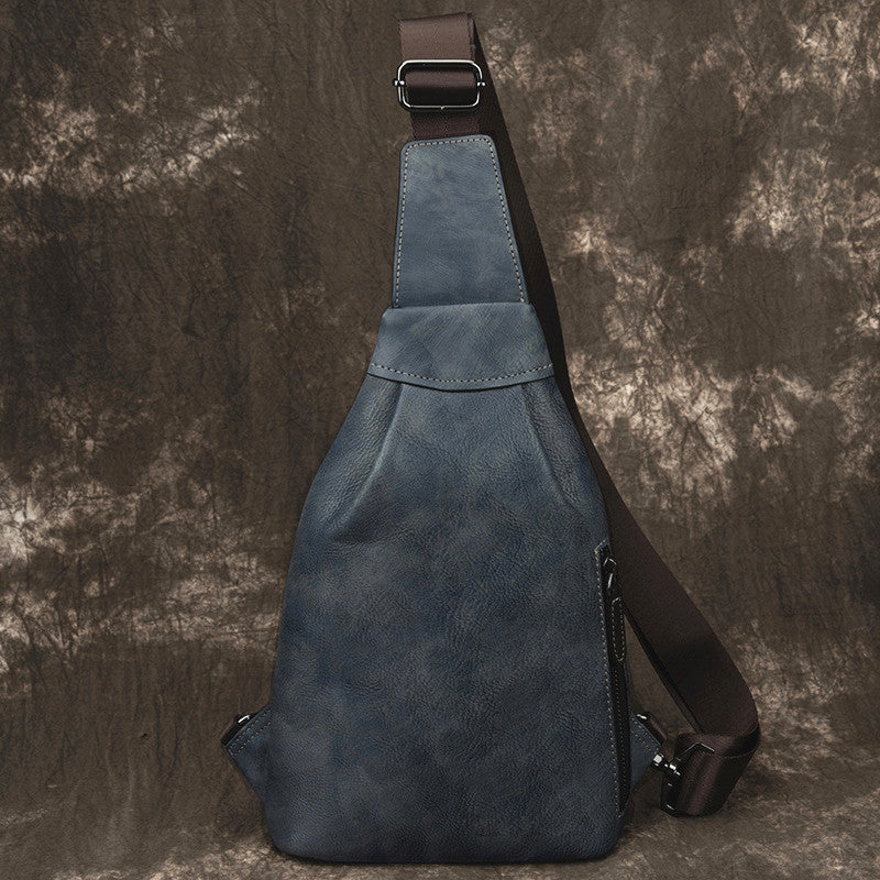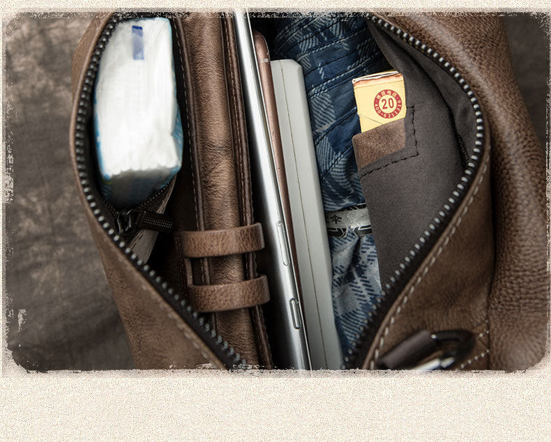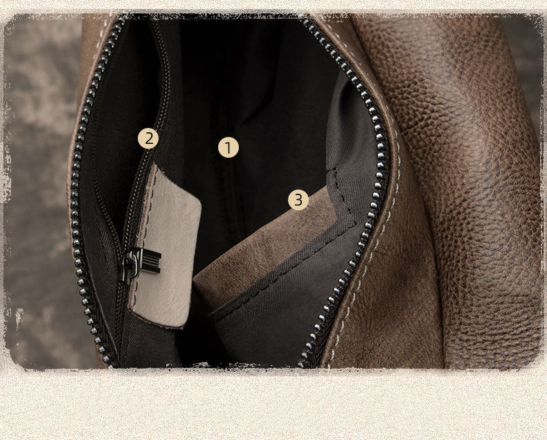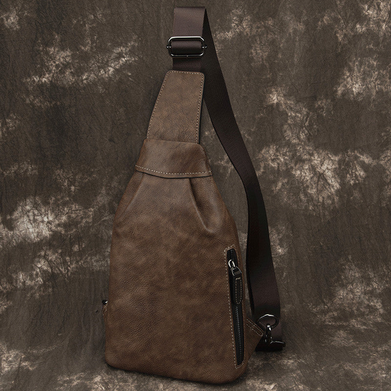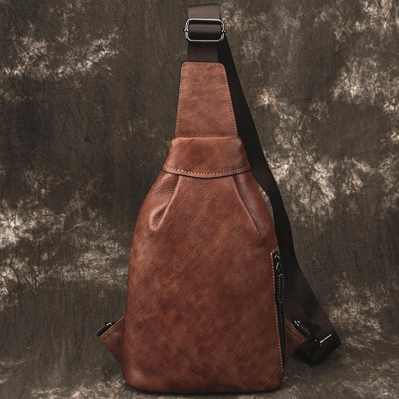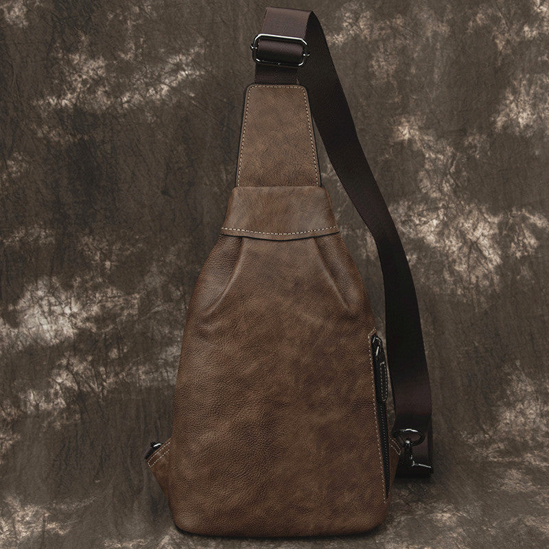 Style: Brown Cool LEATHER MENS 8 inches One Shoulder Backpack Chest Bag Retro Brown Shoulder Bag For Men