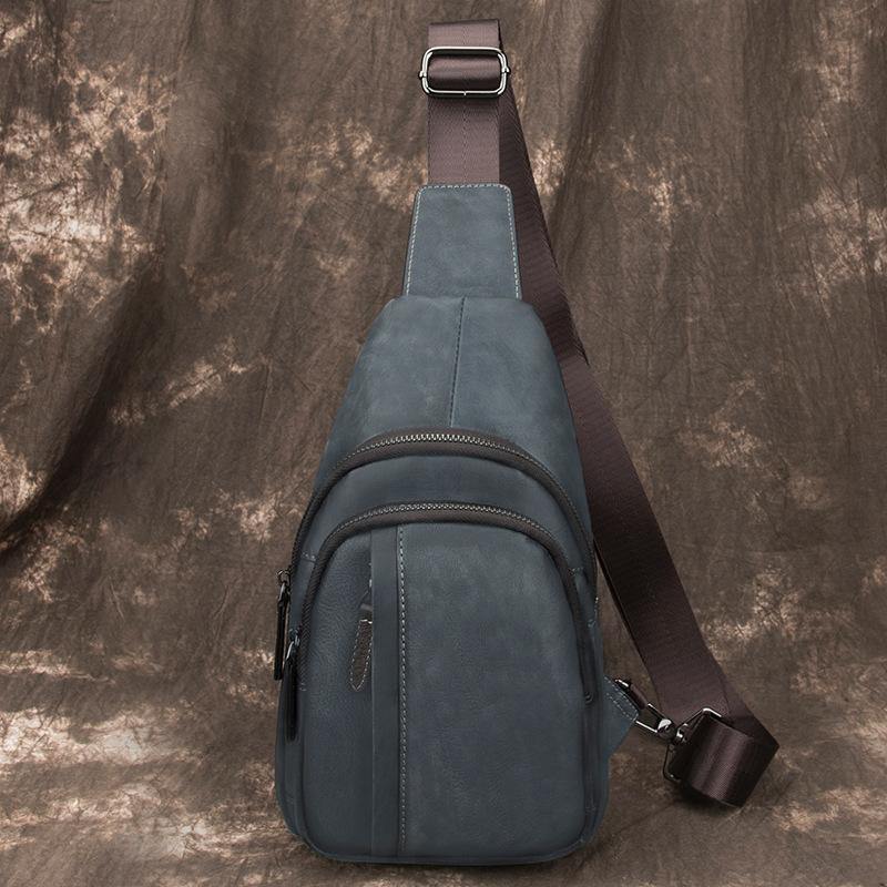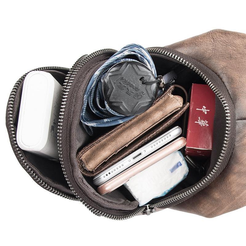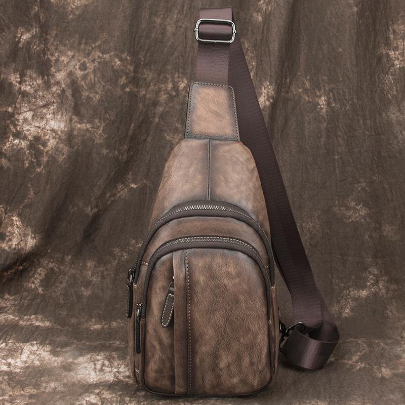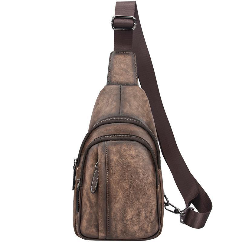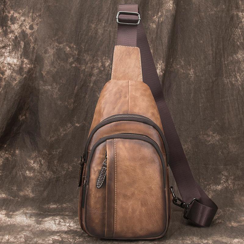 Style: Brown Cool LEATHER MENS 8 inches Small Dark Brown Sling Bag One Shoulder Backpack Chest Bag For Men