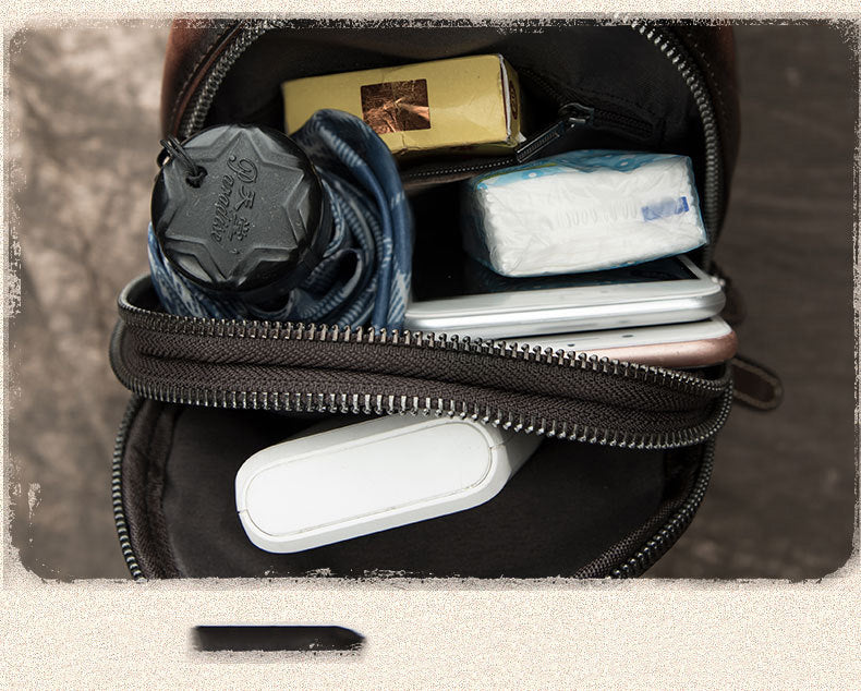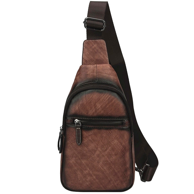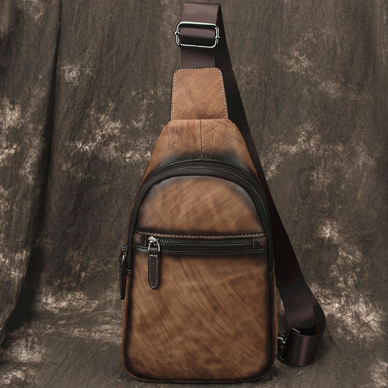 Style: Brown Cool LEATHER MENS Sling Bag Chest Bag Khaki One Shoulder Bag For Men