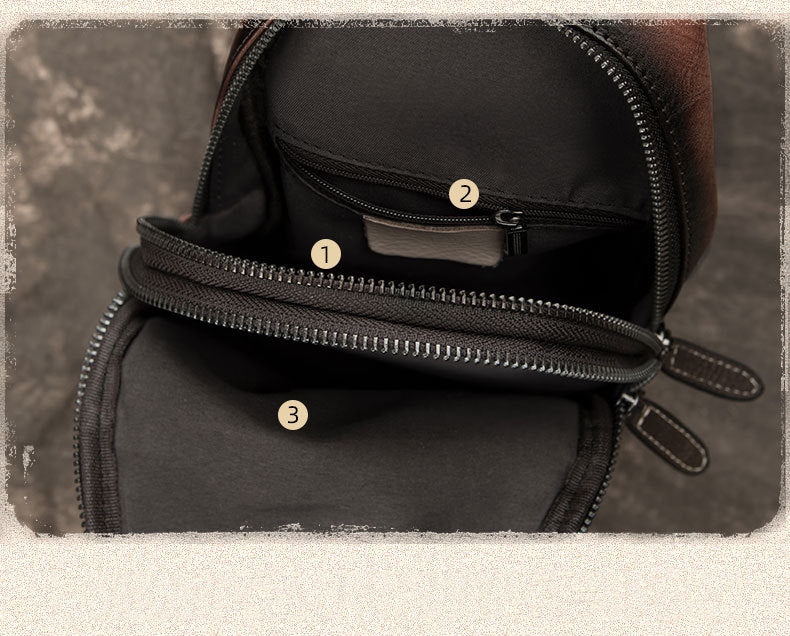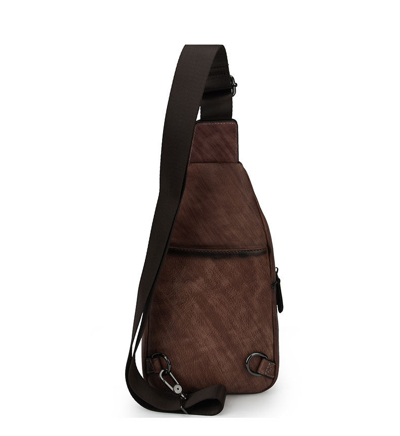 Design: Brown Cool LEATHER MENS Sling Bag Chest Bag Khaki One Shoulder Bag For Men