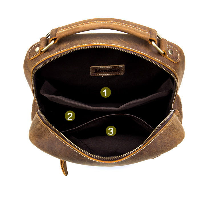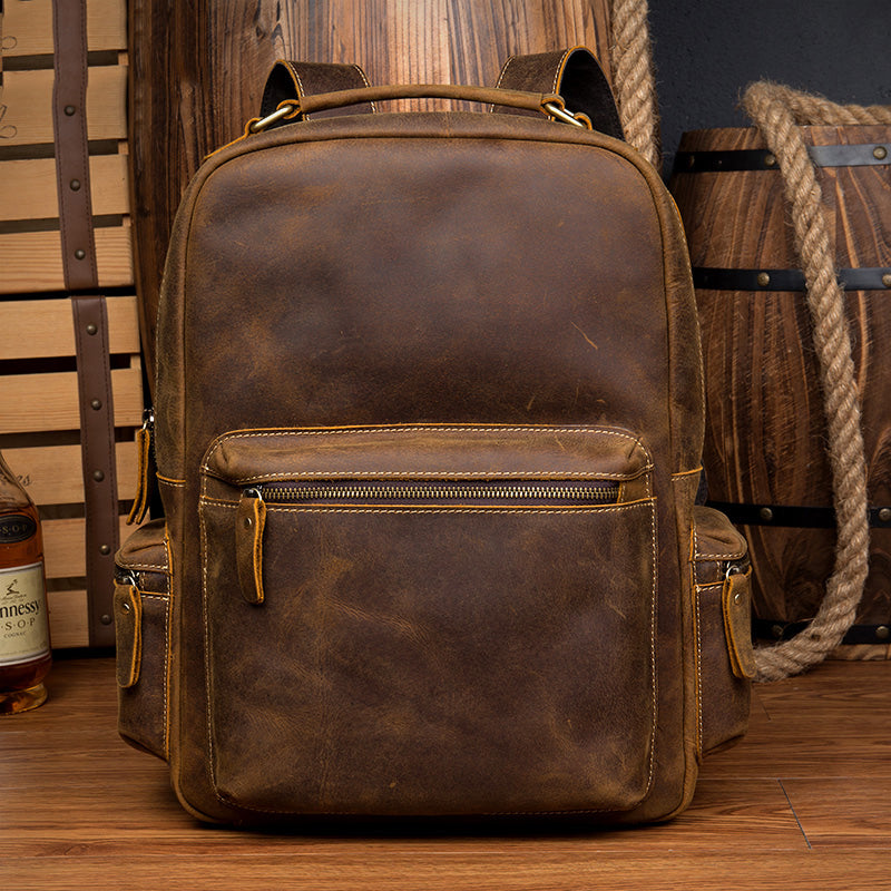 Design: Brown Fashion Mens Leather 15-inch Computer Backpack Dark Brown Travel Backpack School Backpacks for men