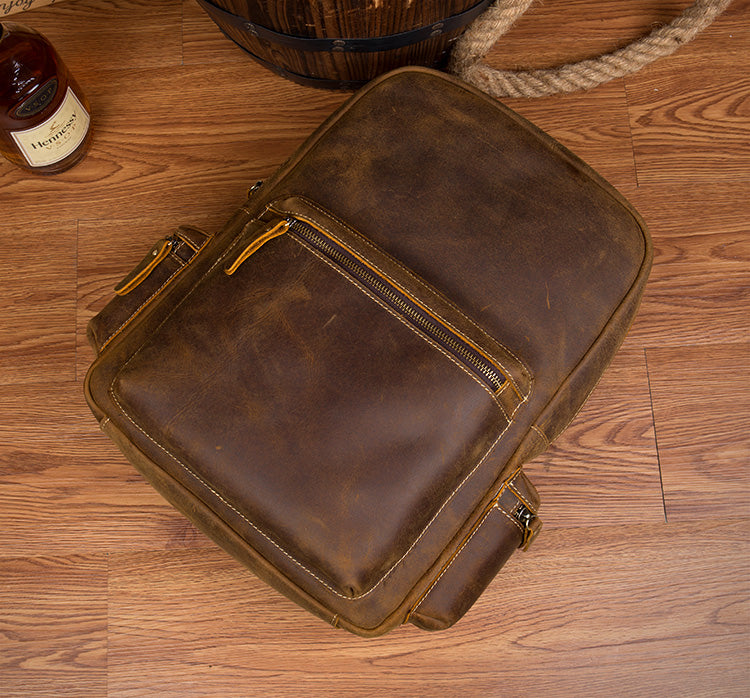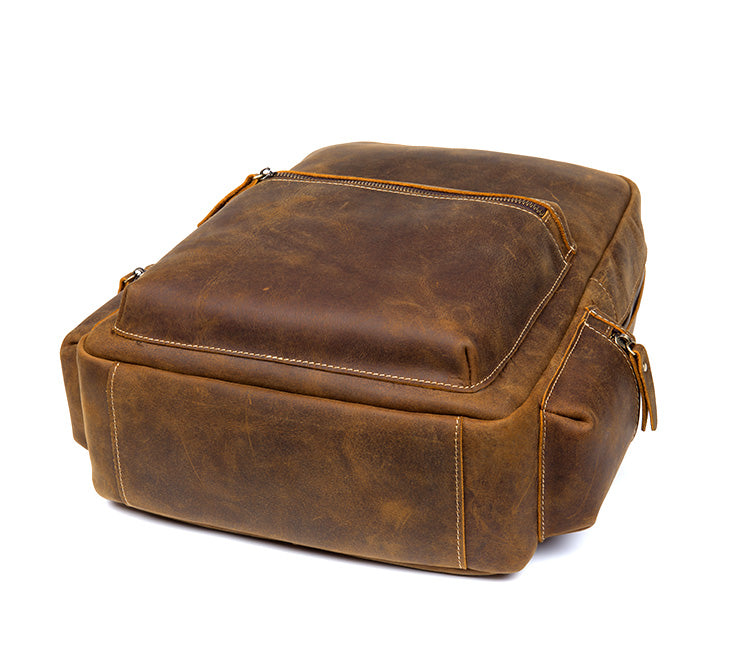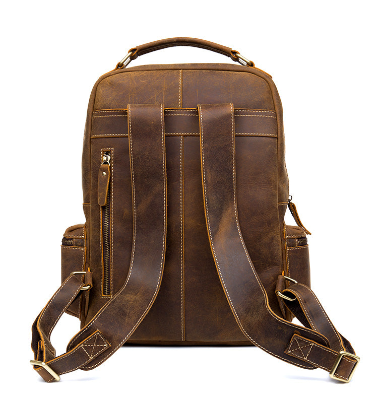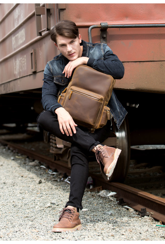 Fashion Brown Mens Leather 15-inch Computer Laptop Backpack Brown Travel Backpack School Backpacks for men
