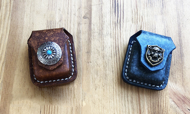 Design:?Handmade Mens Black Leather Zippo Lighter Case Belt Zippo Lighter Holder with Belt Clip