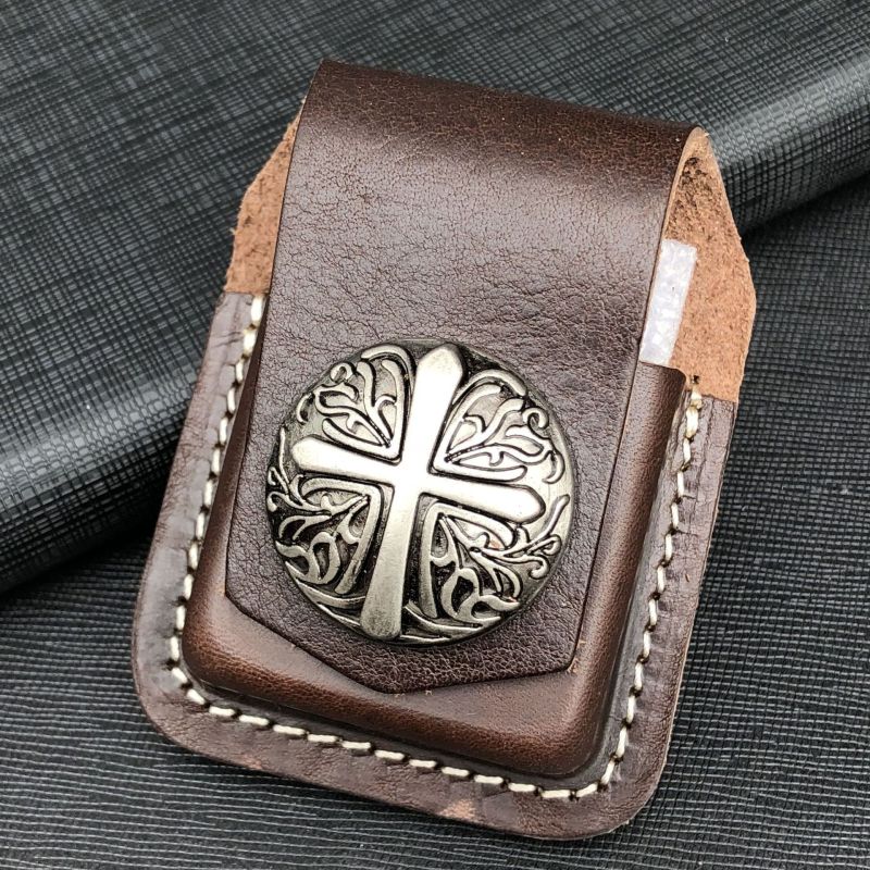 Style: Brown Handmade Leather Mens Black Zippo Lighter Holders Lighter Case For Men