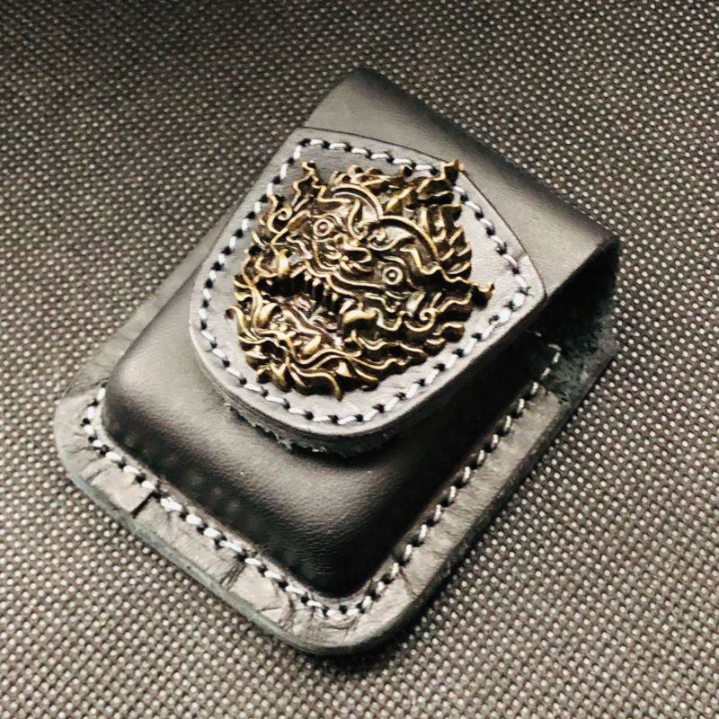 Design: Brown Handmade Leather Mens Black Zippo Lighter Holders Lighter Case For Men