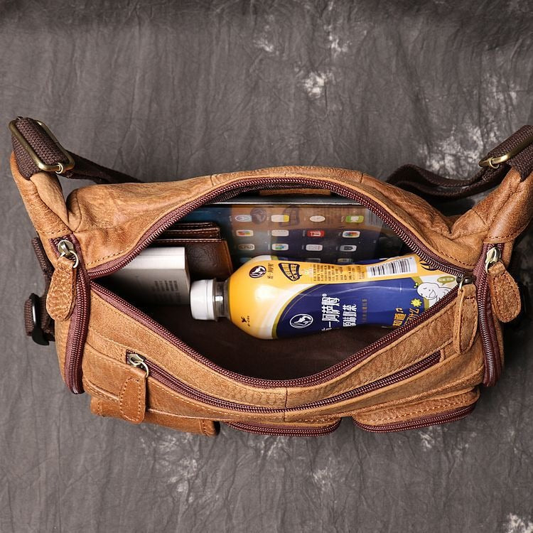 Style: Brown Leather Mens Fanny Packs Barrel Bum Bags Cool Waist Bag for Men
