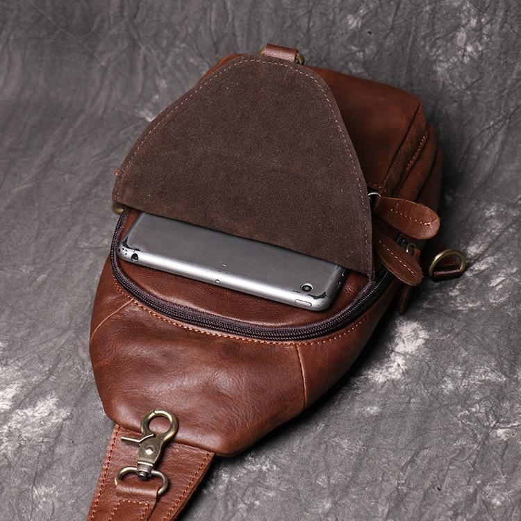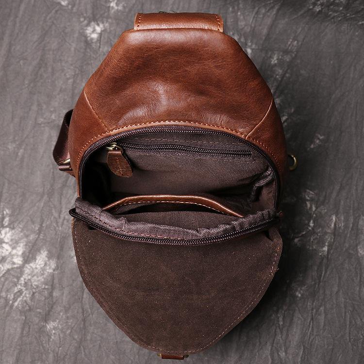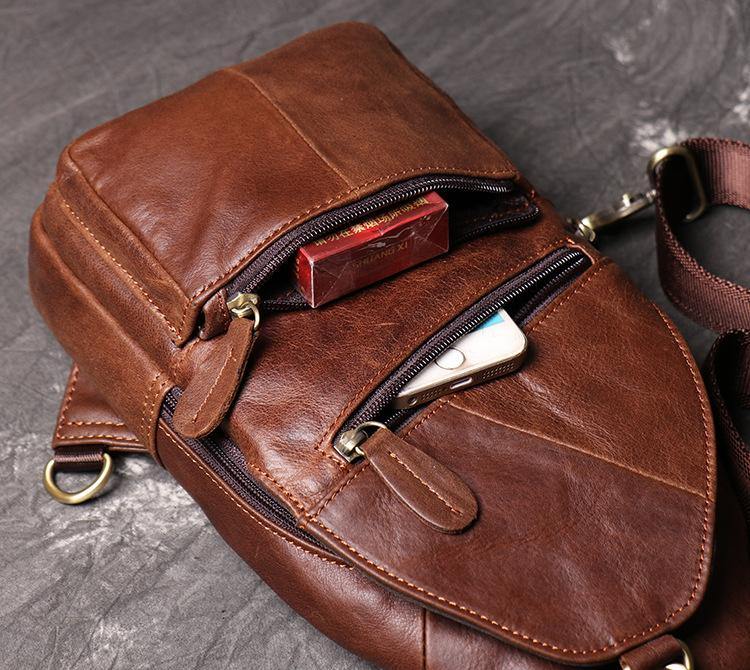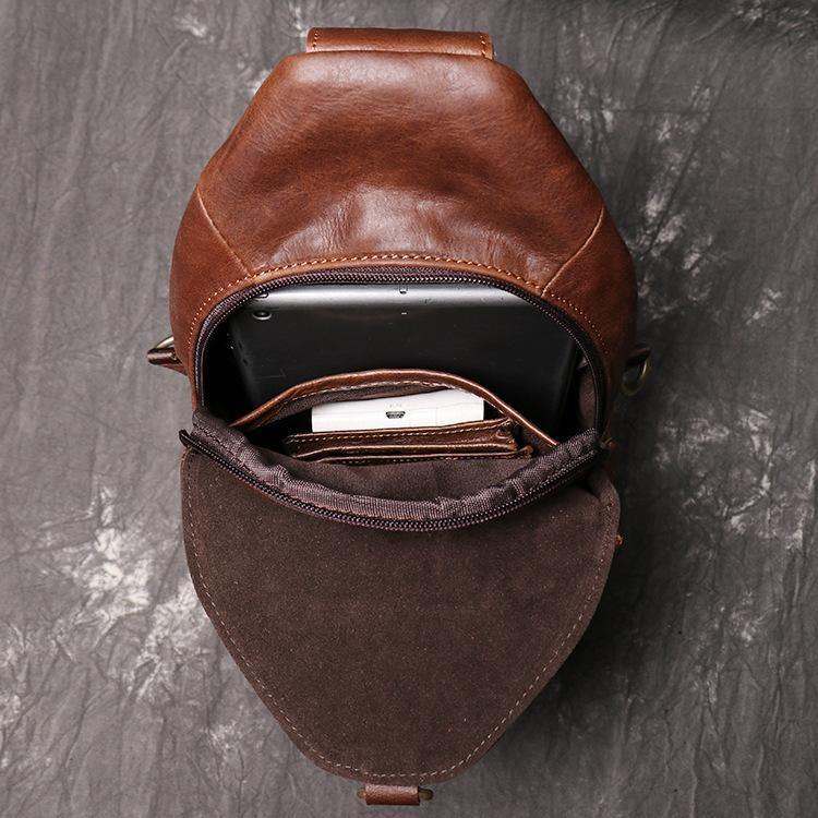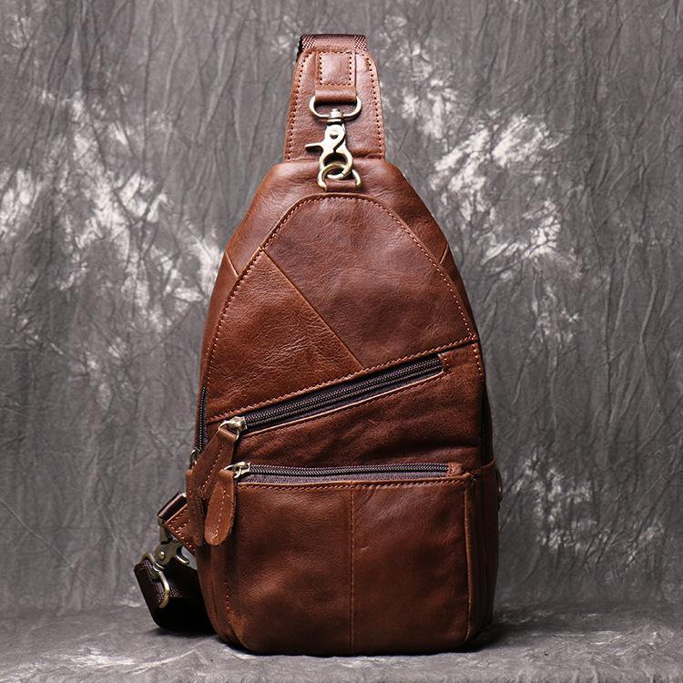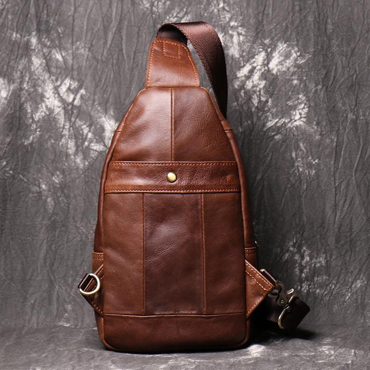 Brown Leather Backpack Men's Sling Bag Chest Bag Brown One shoulder Backpack Sling Pack For Men