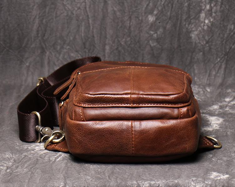 Style: Brown Leather Backpack Men's 8-inch Sling Bag Chest Bag One shoulder Backpack Sports Bag For Men