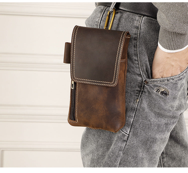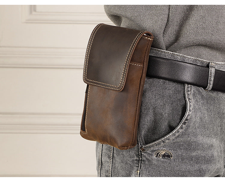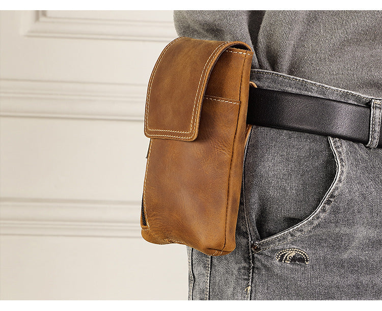 Leather Belt Phone Pouch | Vintage Crazy Horse Leather Multi-Pocket Organizer