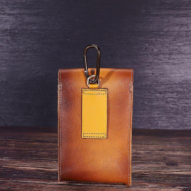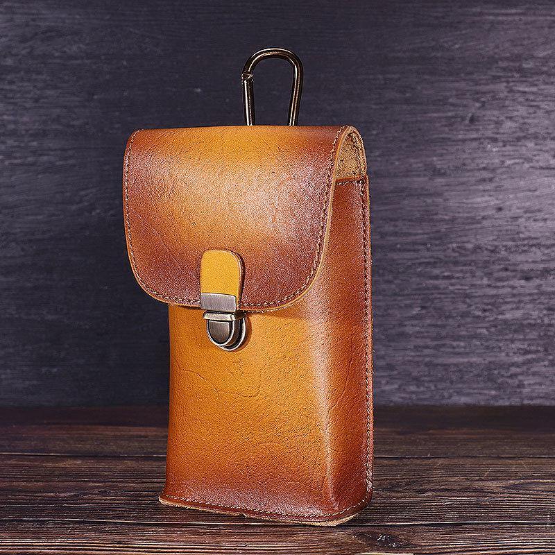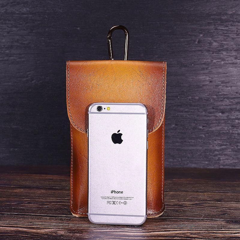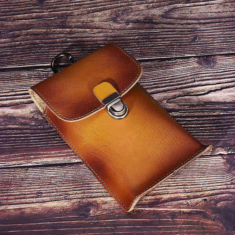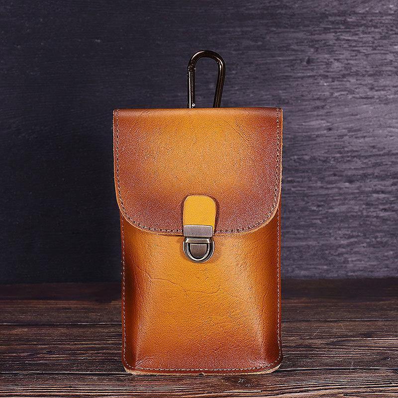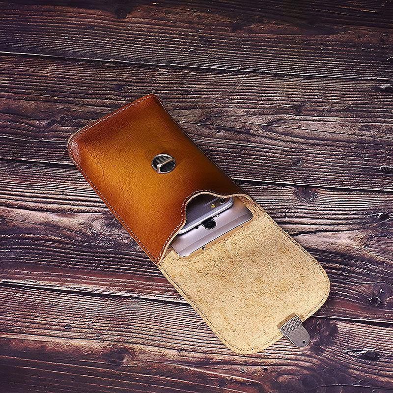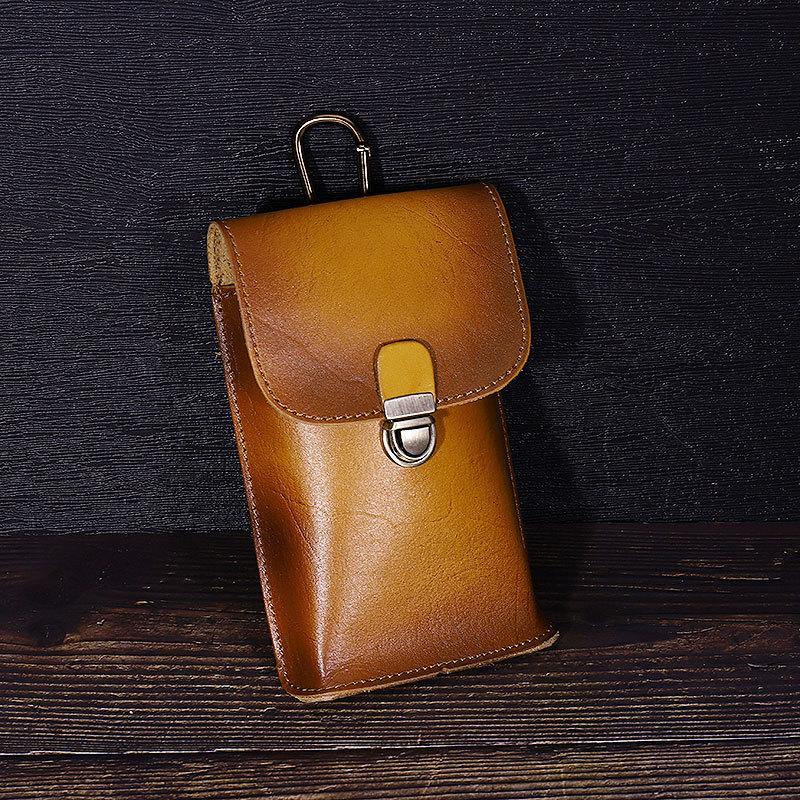 Design: Brown Leather Cell Phone Mens Belt Pouches Waist Bags BELT BAG Mini Bag For MenOverview: