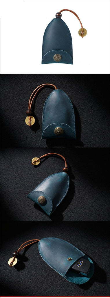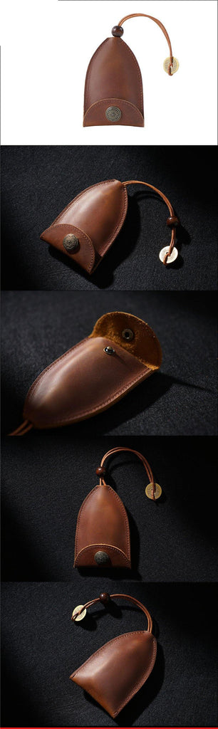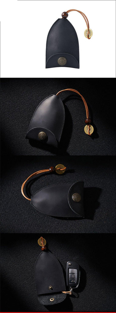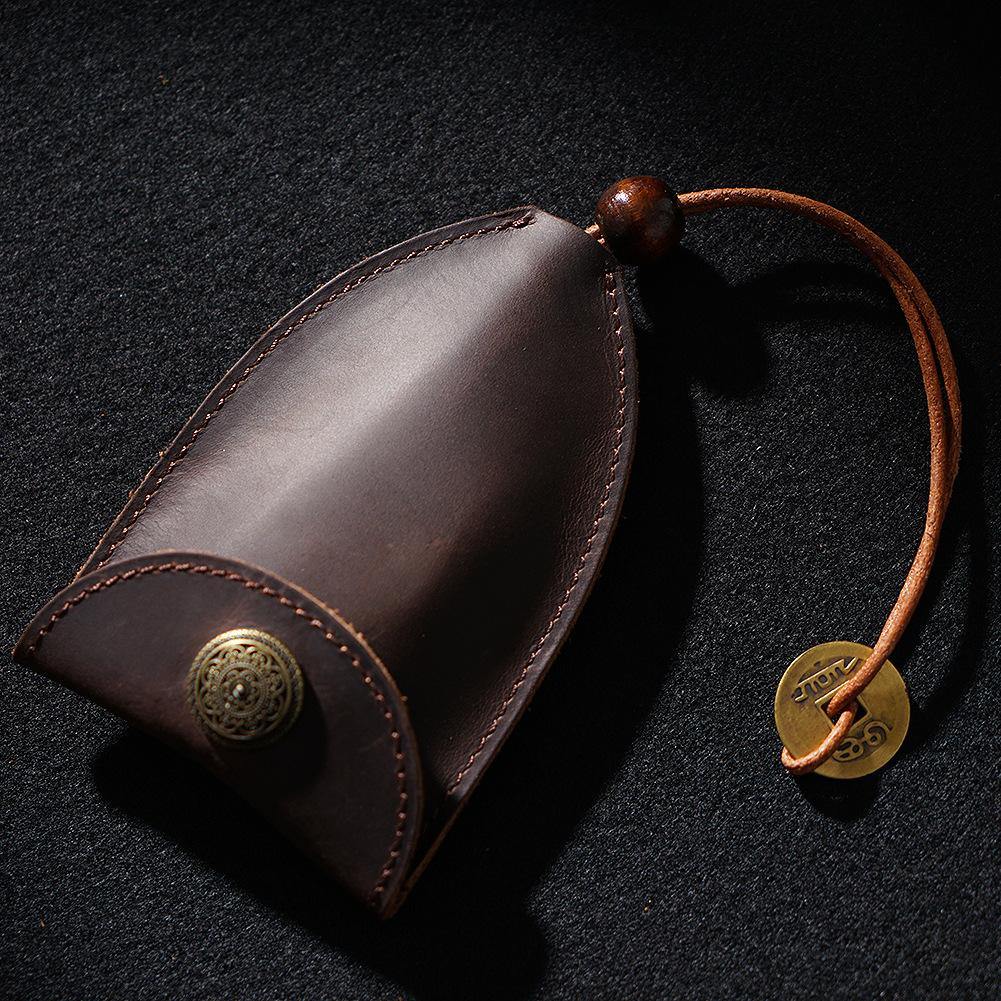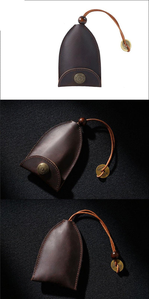 Design: Brown Leather Draw Men and Women's Key Wallet Black Key Case Car Car Key Holder For Men