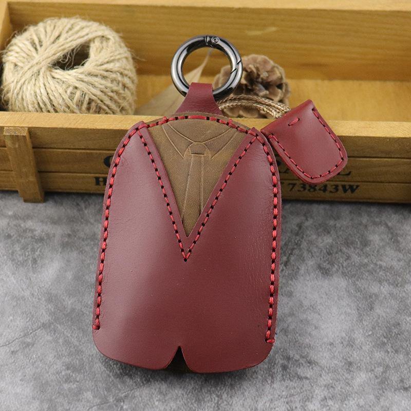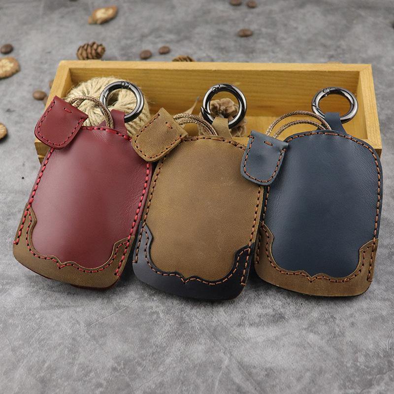 Design: Brown Leather Draw Men and Women's Key Wallet Wine Red Key Case Car Car Key Holder For Men