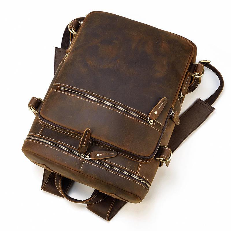 Design: Brown Leather Men's 16 inches Large Computer Backpack Retro Large Travel Backpack Large College Backpack For MenOverview: