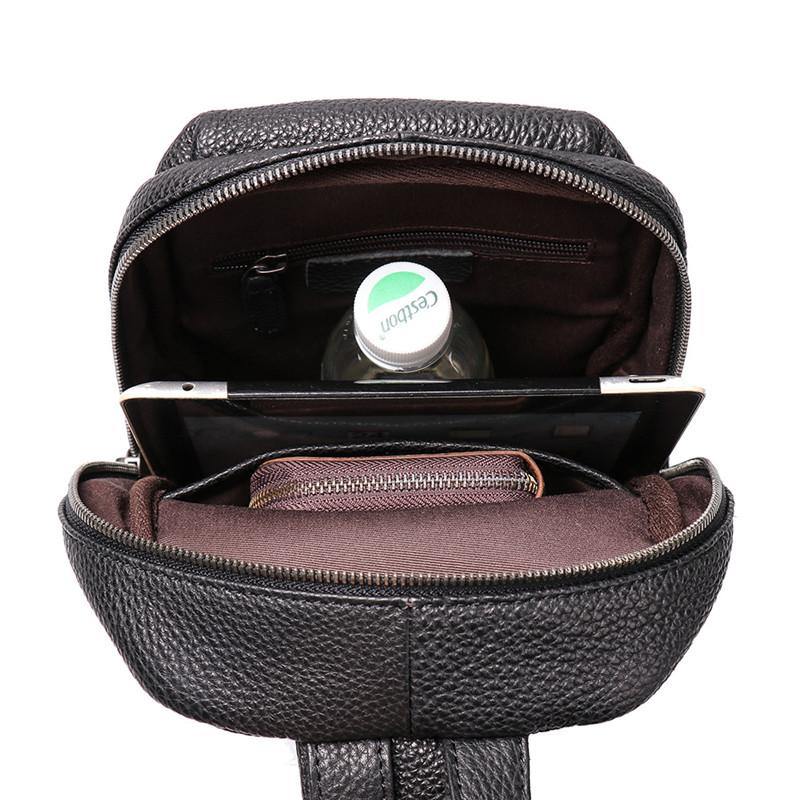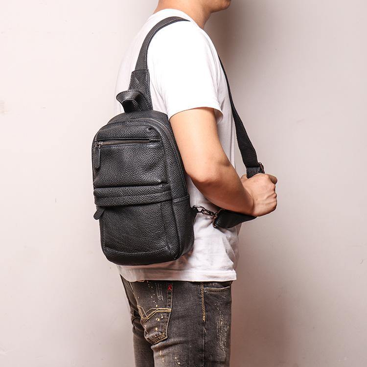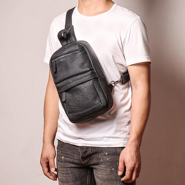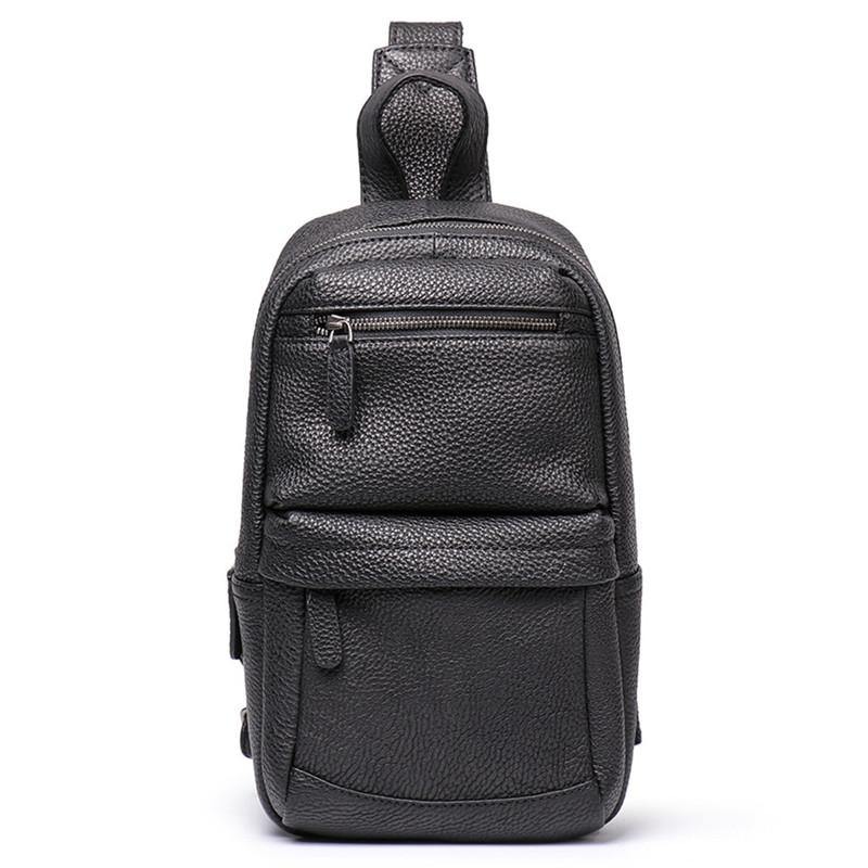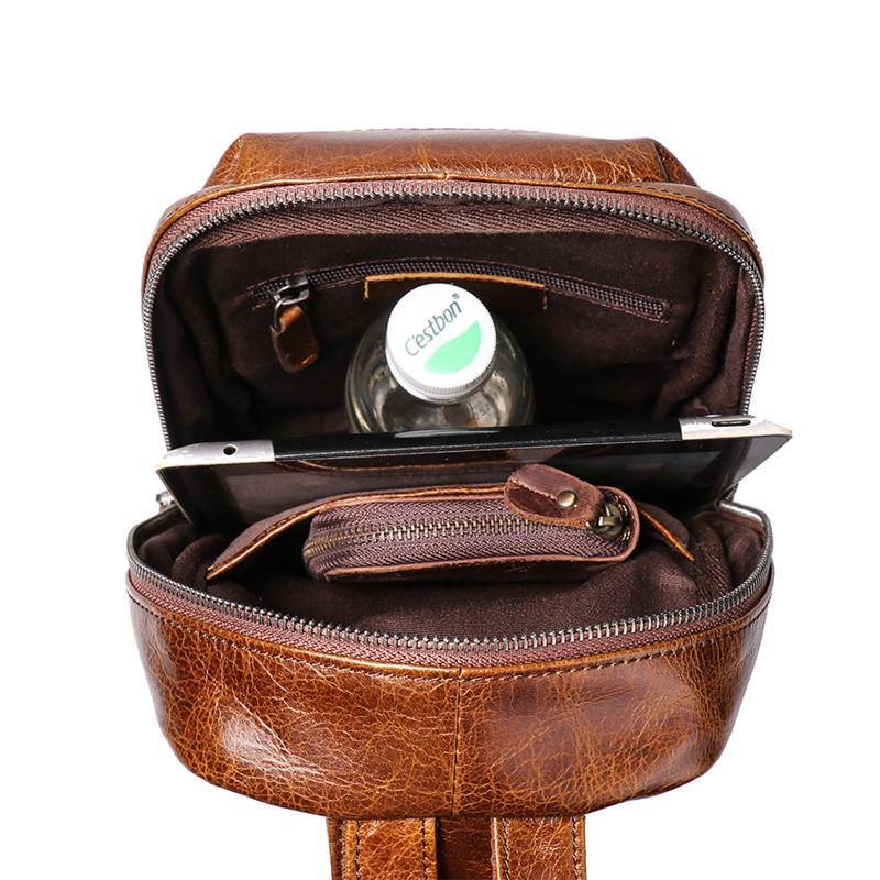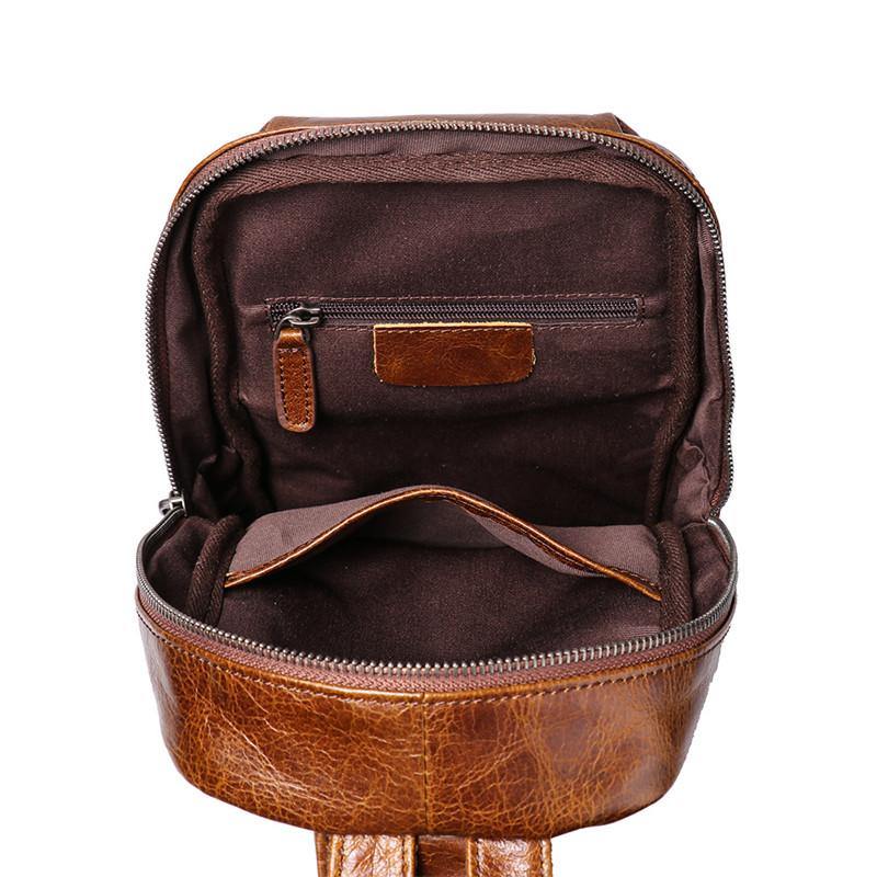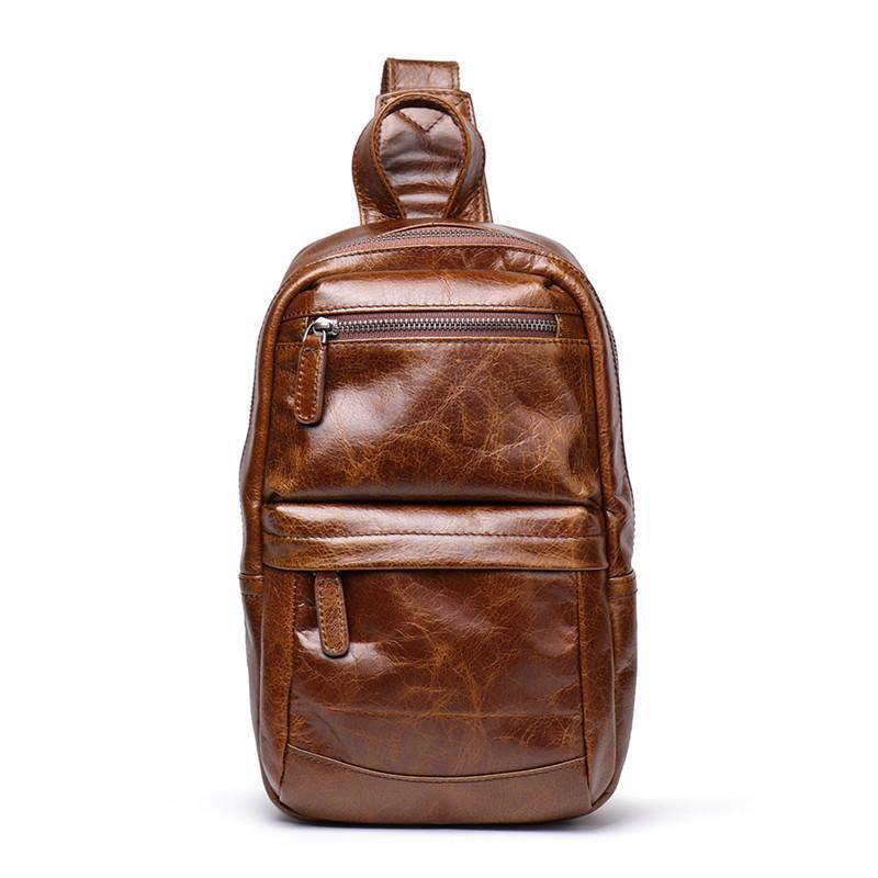 Design: Brown Leather Men's 8 inches Sling Bag Coffee Chest Bag One Shoulder Backpack For Men