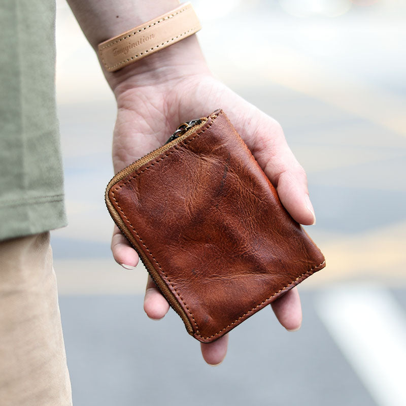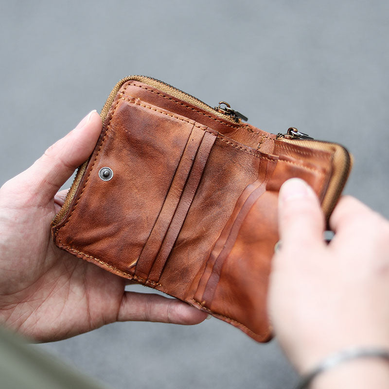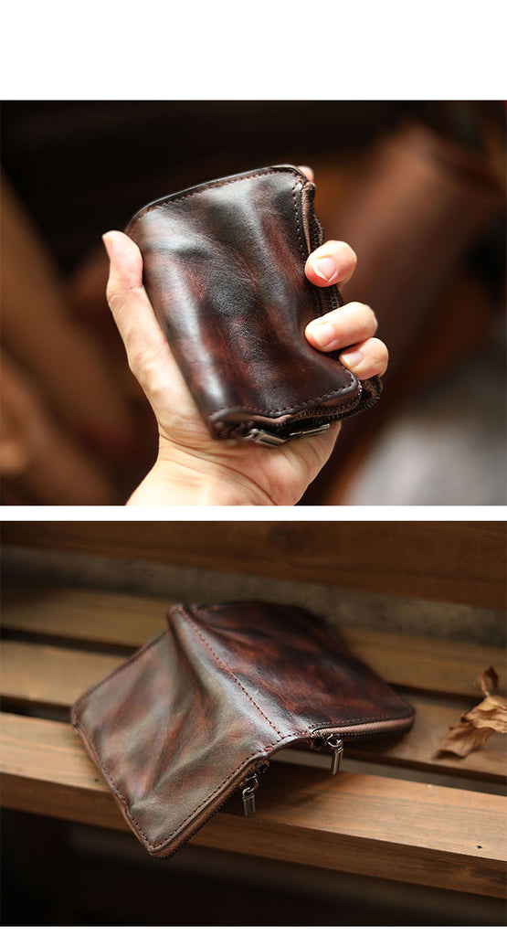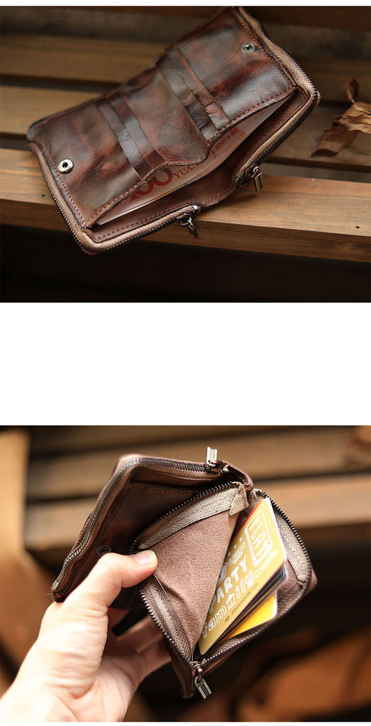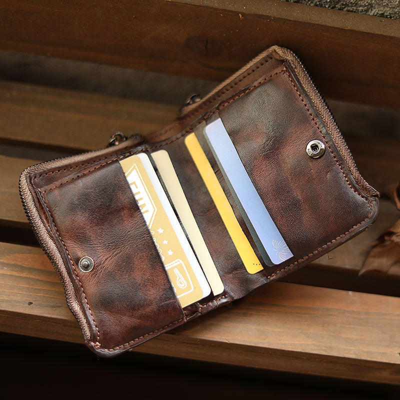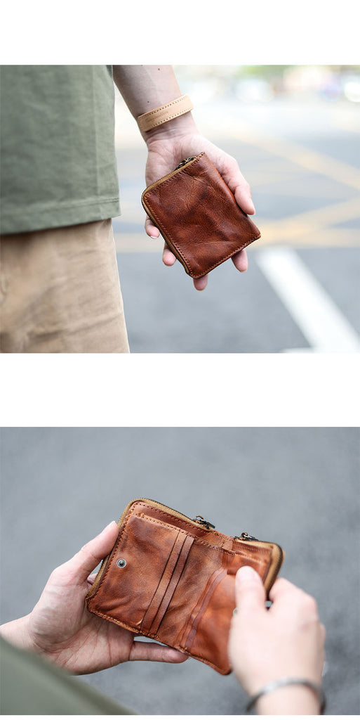 Brown Leather Mens billfold Wallet Cool Bifold Small Wallet Front Pocket Wallet For Men