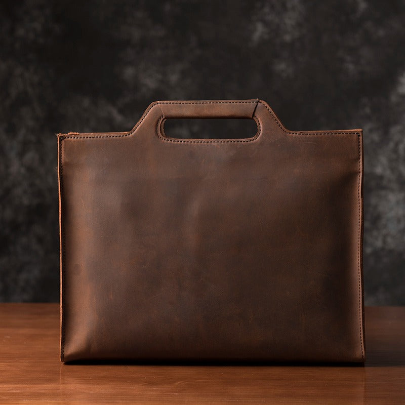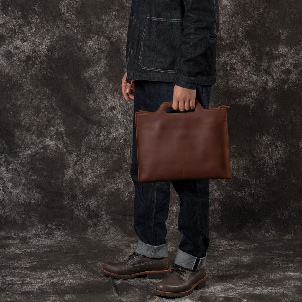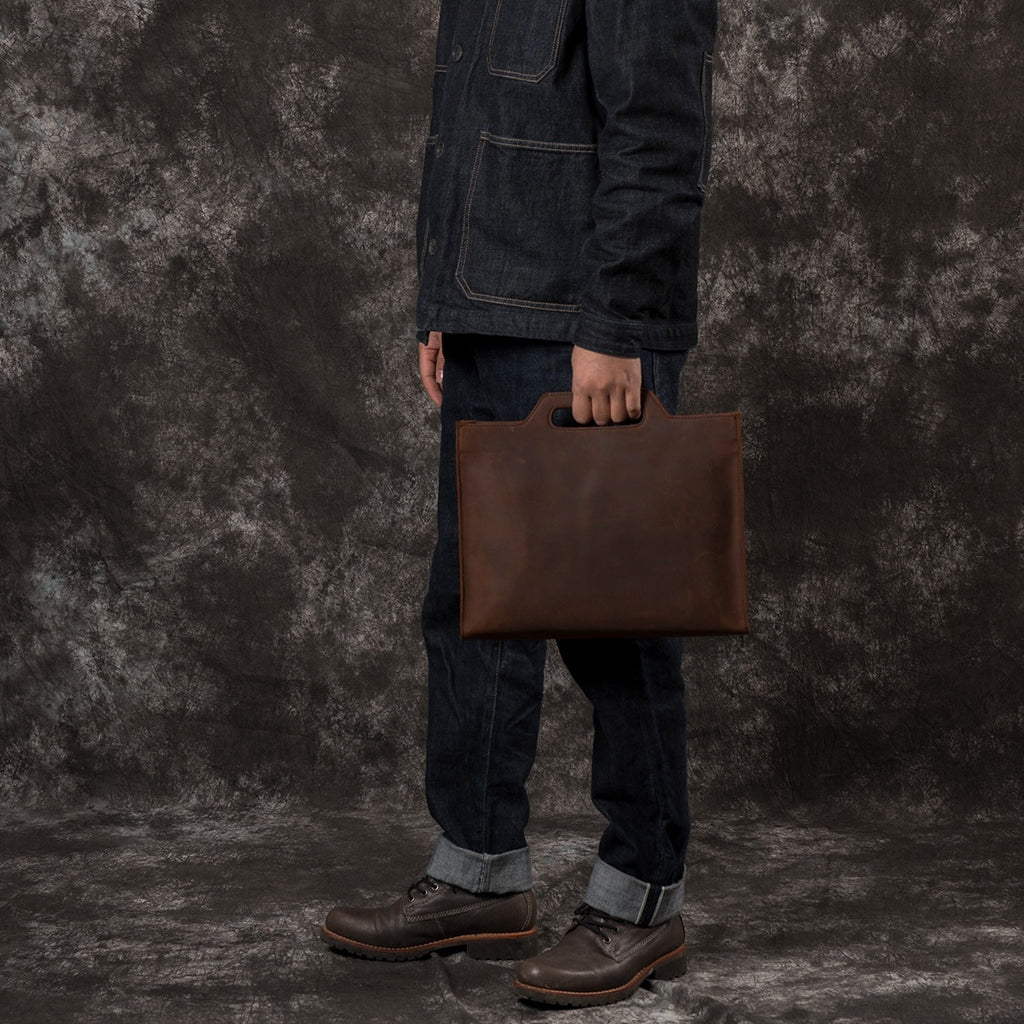 Style: Brown Leather Mens Briefcase Brown Work Handbag 13 inches Laptop Business Bag For Men