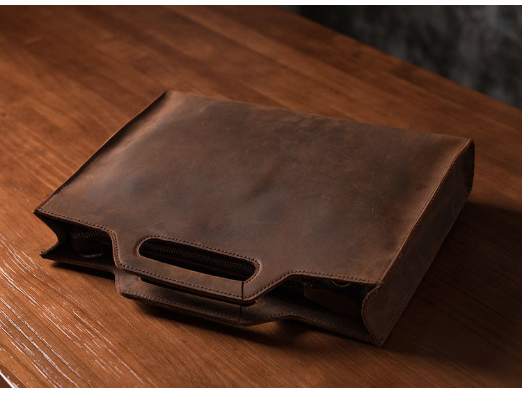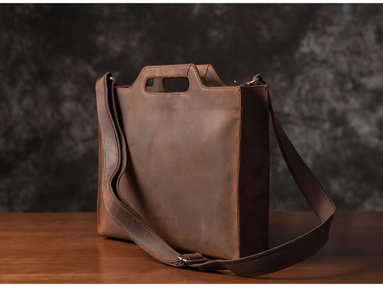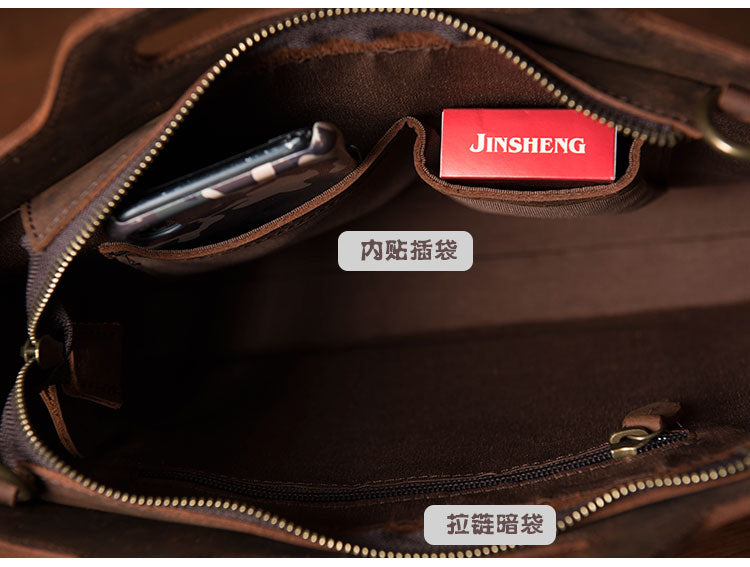 Design: Brown Leather Mens Briefcase Brown Work Handbag 13 inches Laptop Business Bag For Men