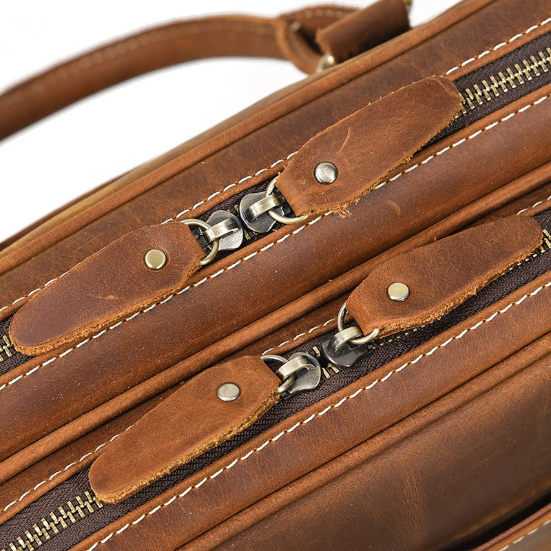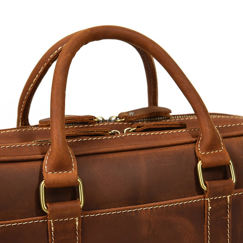 Design: Brown Leather Mens Briefcase Work Briefcase Business Handbag 14'' Laptop Briefcase For MenOverview: