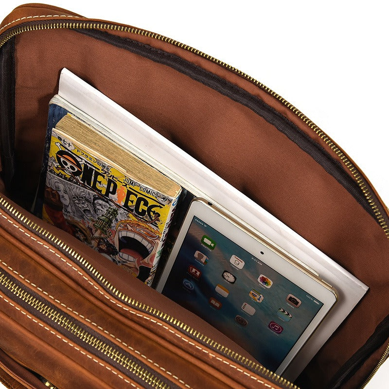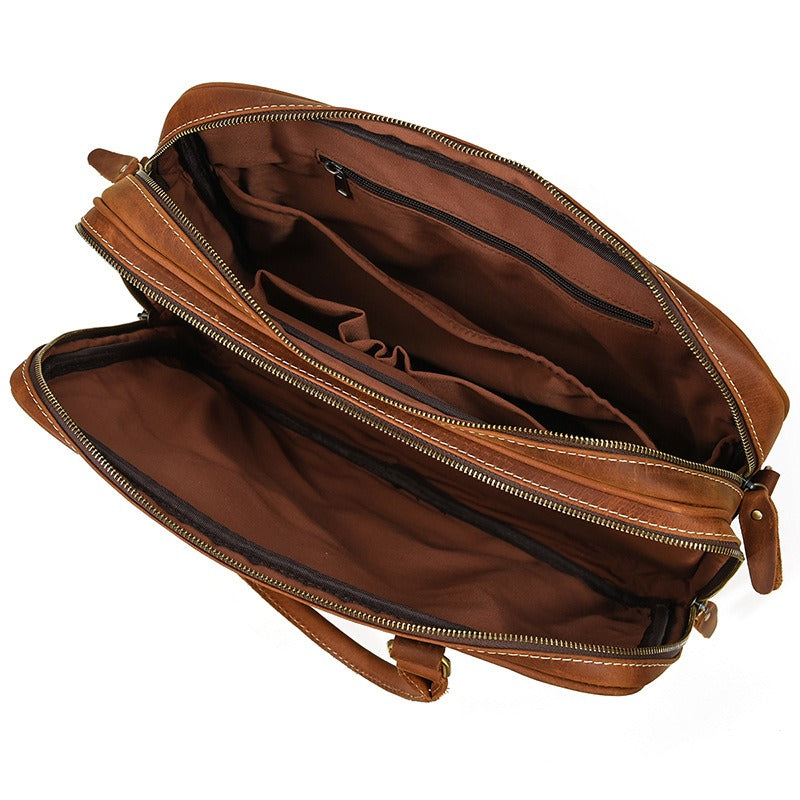 Design: Brown Leather Mens Briefcase Work Briefcase Business Handbag 14'' Laptop Briefcase For Men