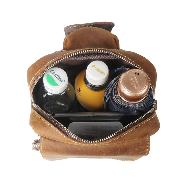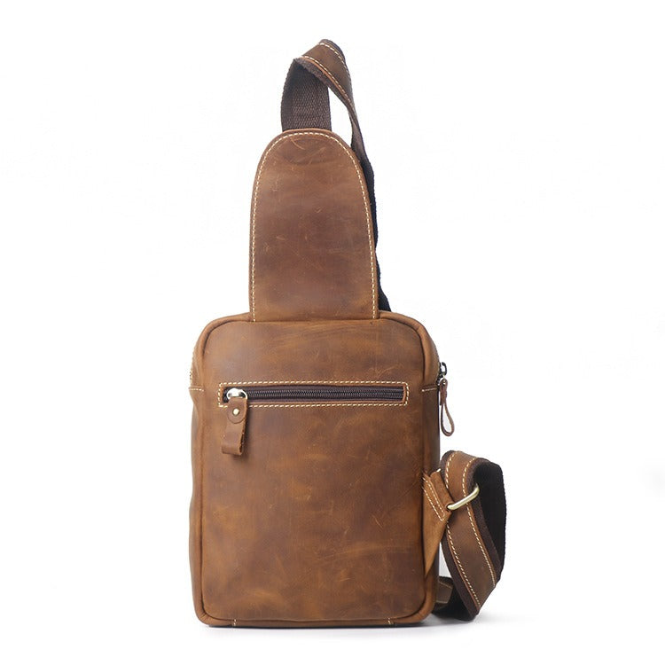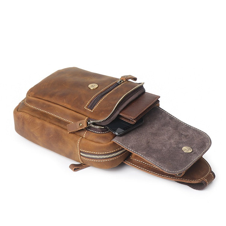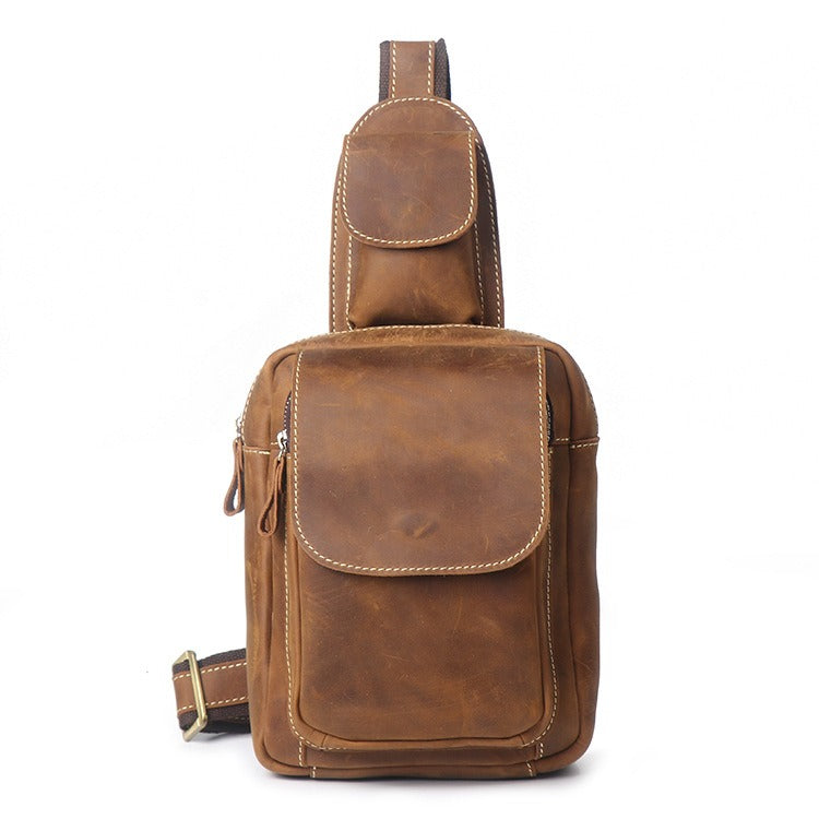 Style: Brown Leather Men's Chest Bag Sling Bag Brown One shoulder Backpack Sling Pack For Men