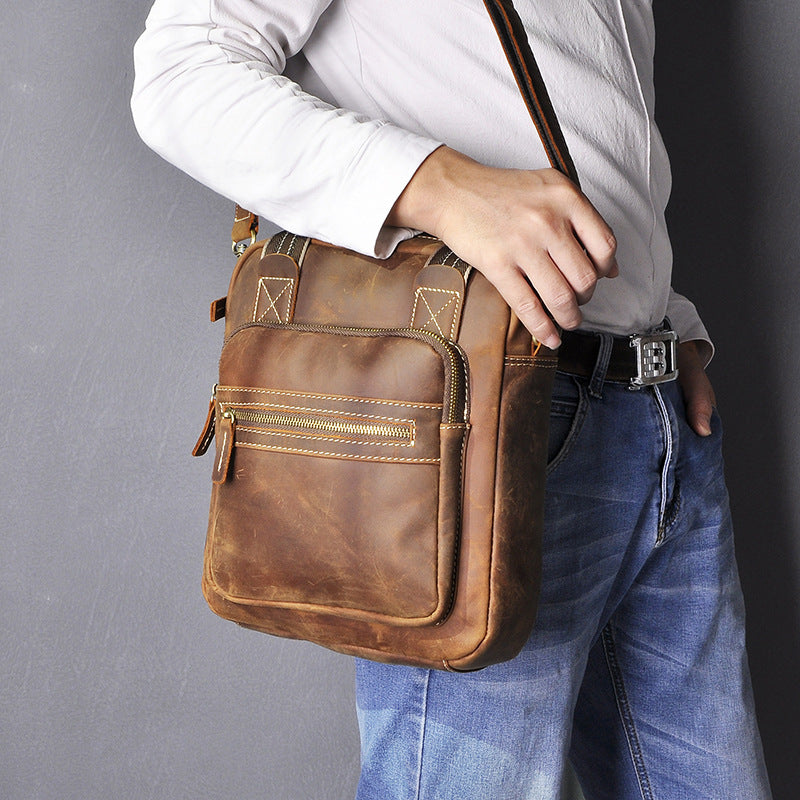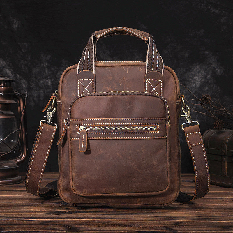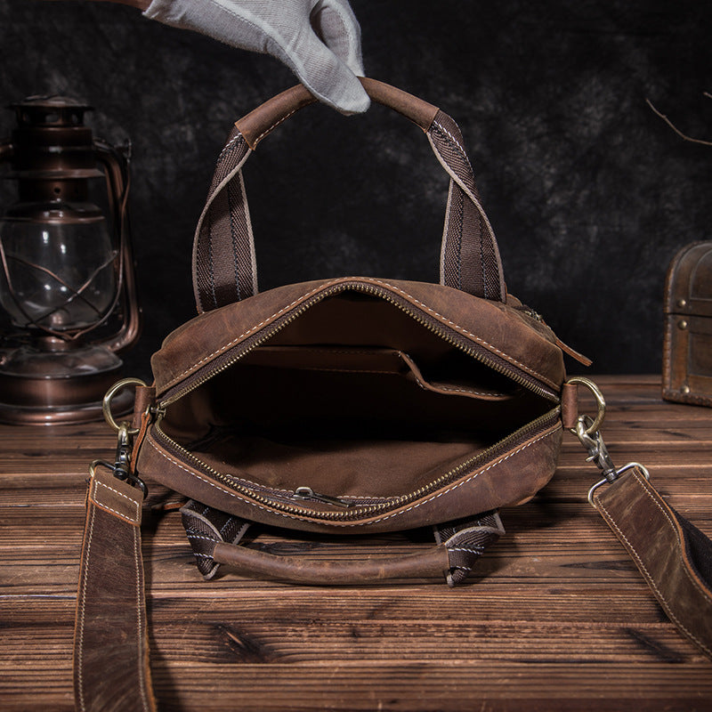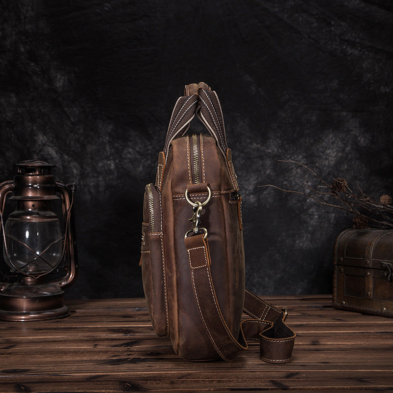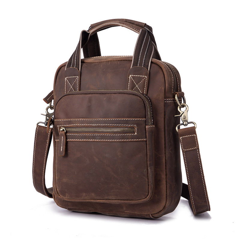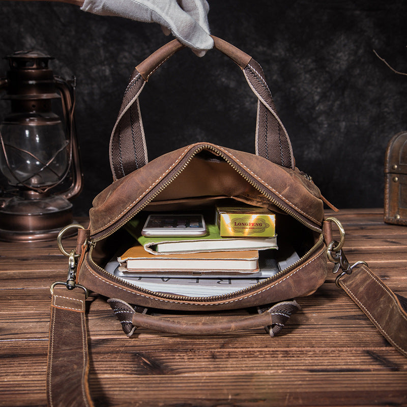 Design: Brown Leather Mens Laptop Work Bag Handbag Vertical 10 inches Briefcase Shoulder Bag Black Business Bags For MenOverview: