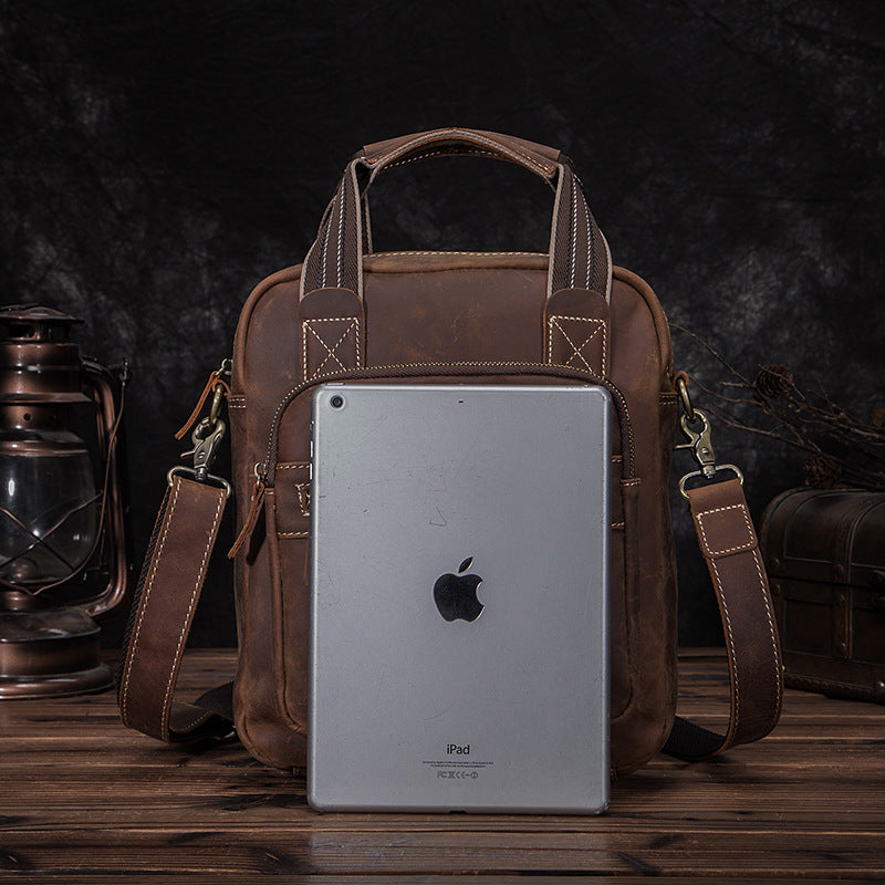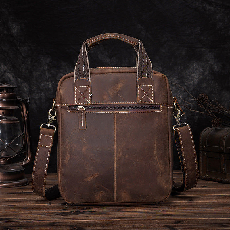Design: Brown Leather Mens Laptop Work Bag Handbag Vertical 10 inches Briefcase Shoulder Bag Black Business Bags For Men