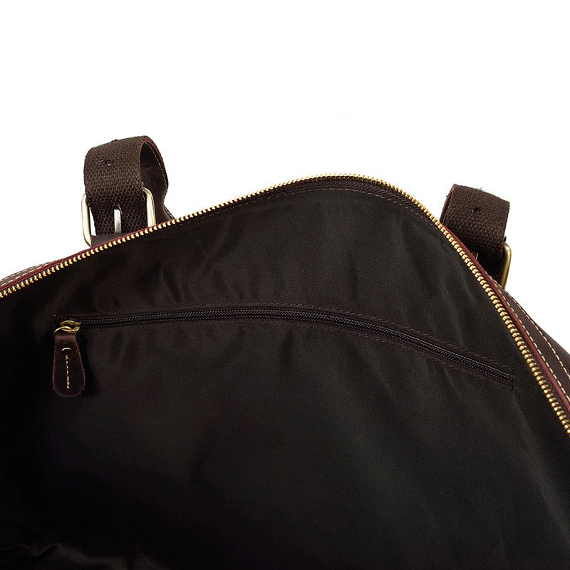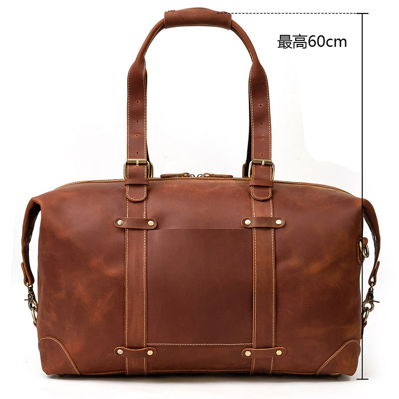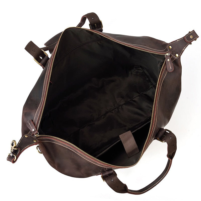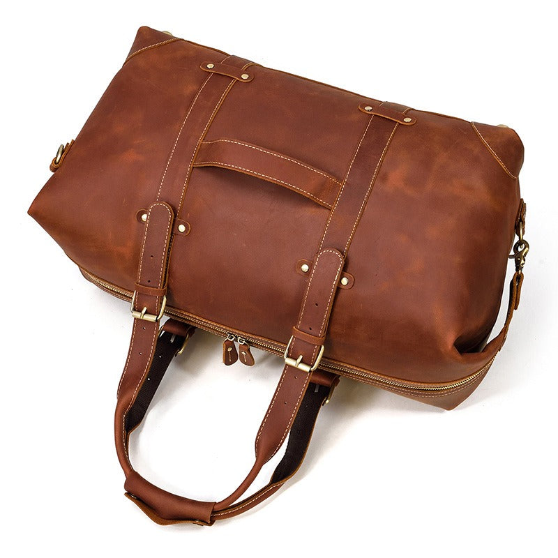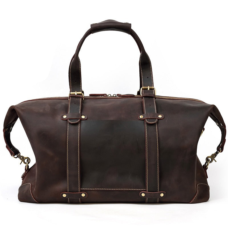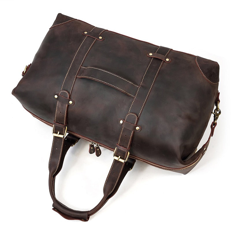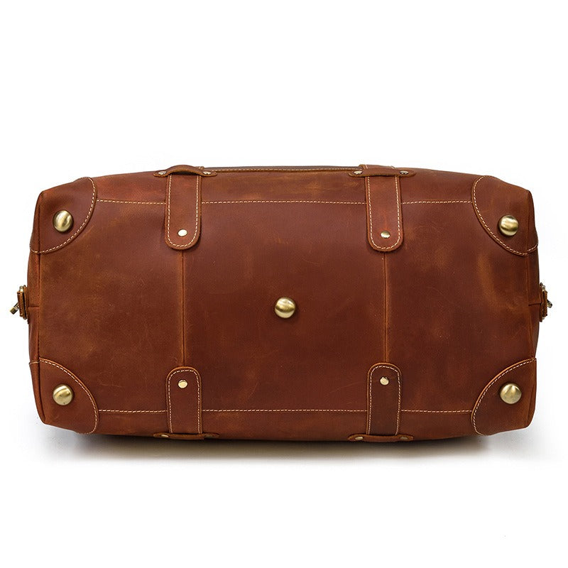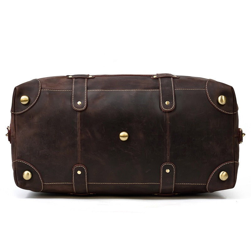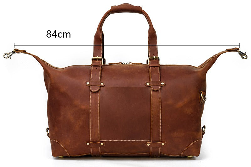 Design: Brown Leather Mens Travel Bag Weekender Bag Large Duffle Bag Cool Overnight Bag for Men