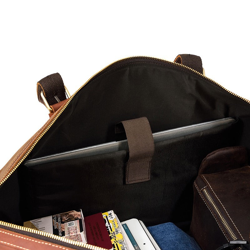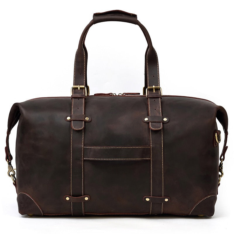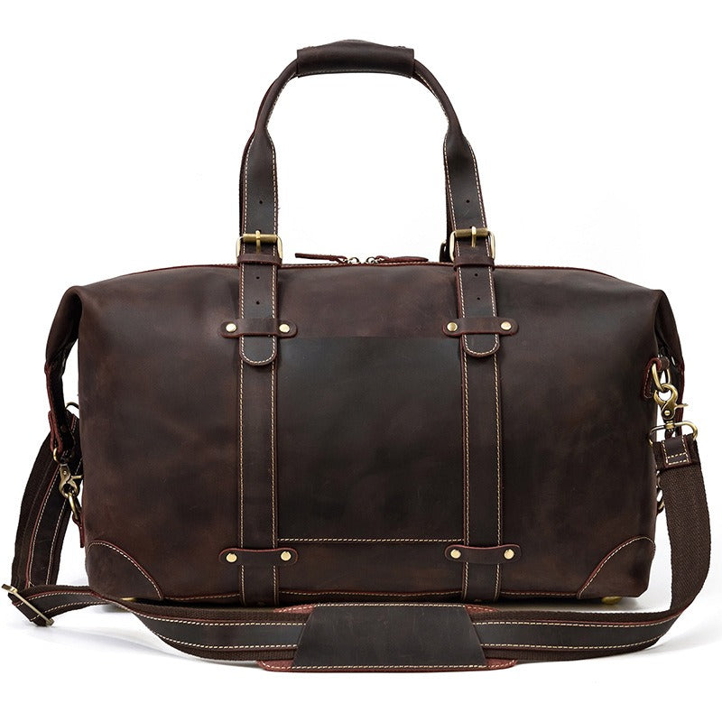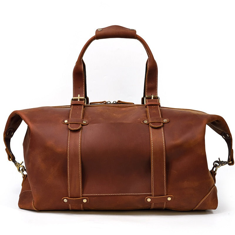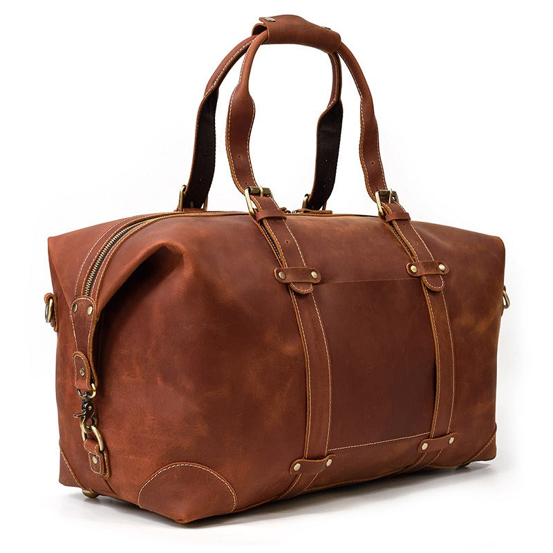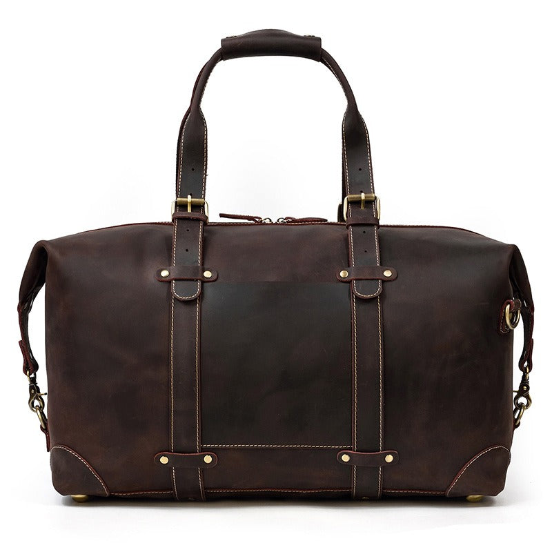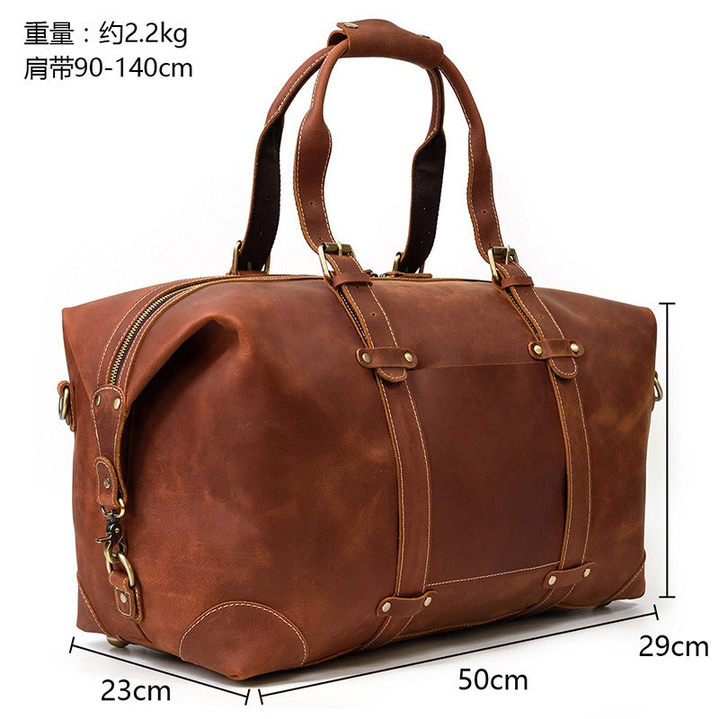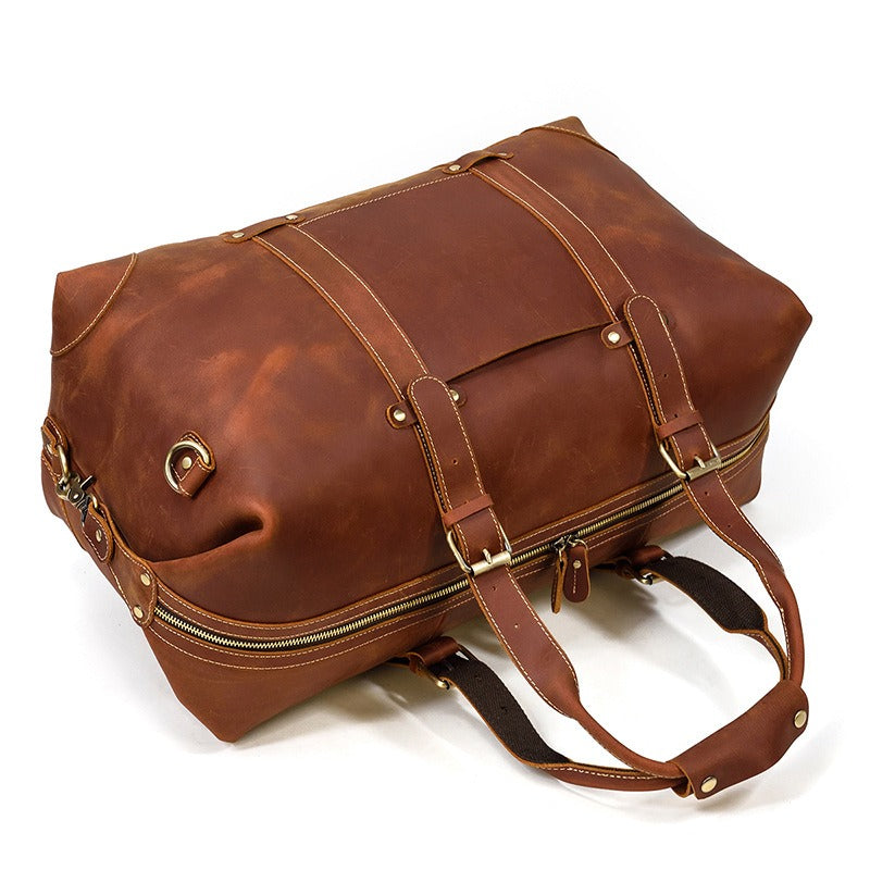 Design: Brown Leather Mens Travel Bag Weekender Bag Large Duffle Bag Cool Overnight Bag for Men