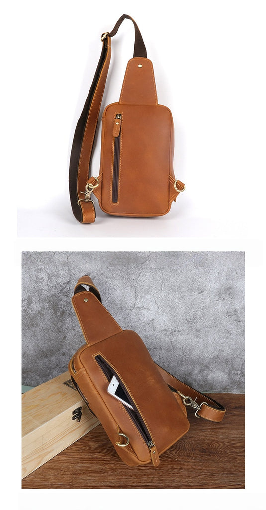 Leather Sling Bag for Men - Premium Crazy Horse Leather