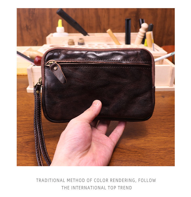 Design: Brown Leather Wristlet Clutch Wallet for Men Leather Phone Clutch Wallet
