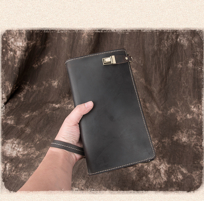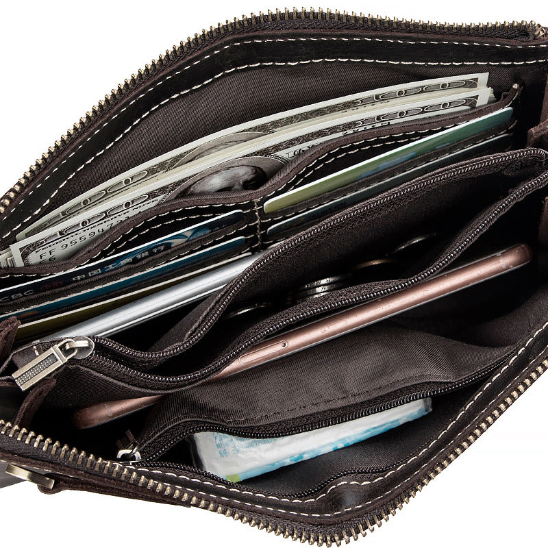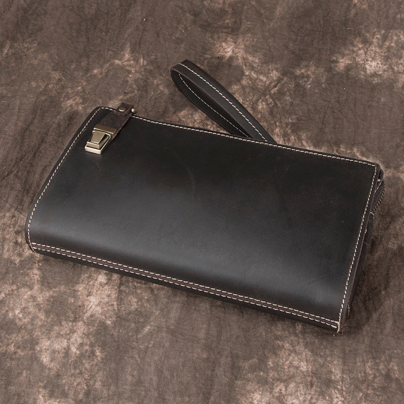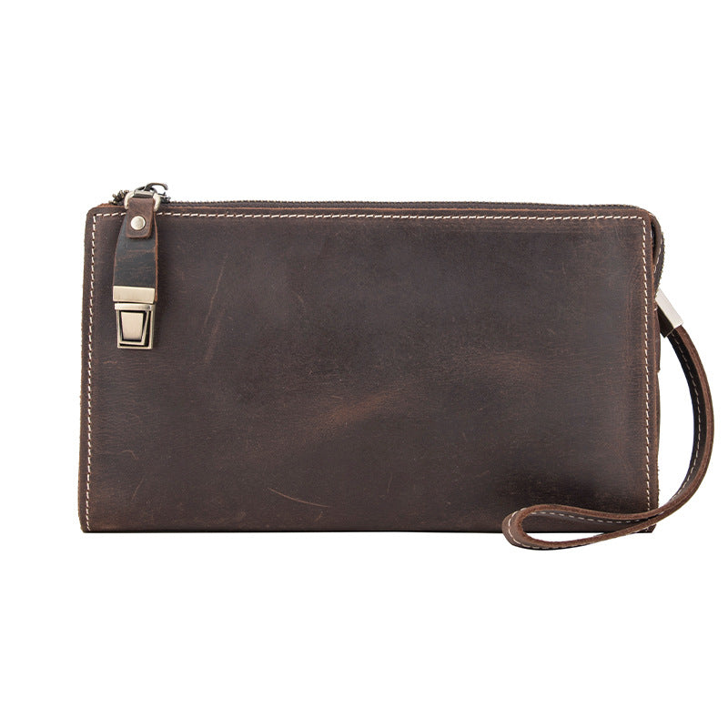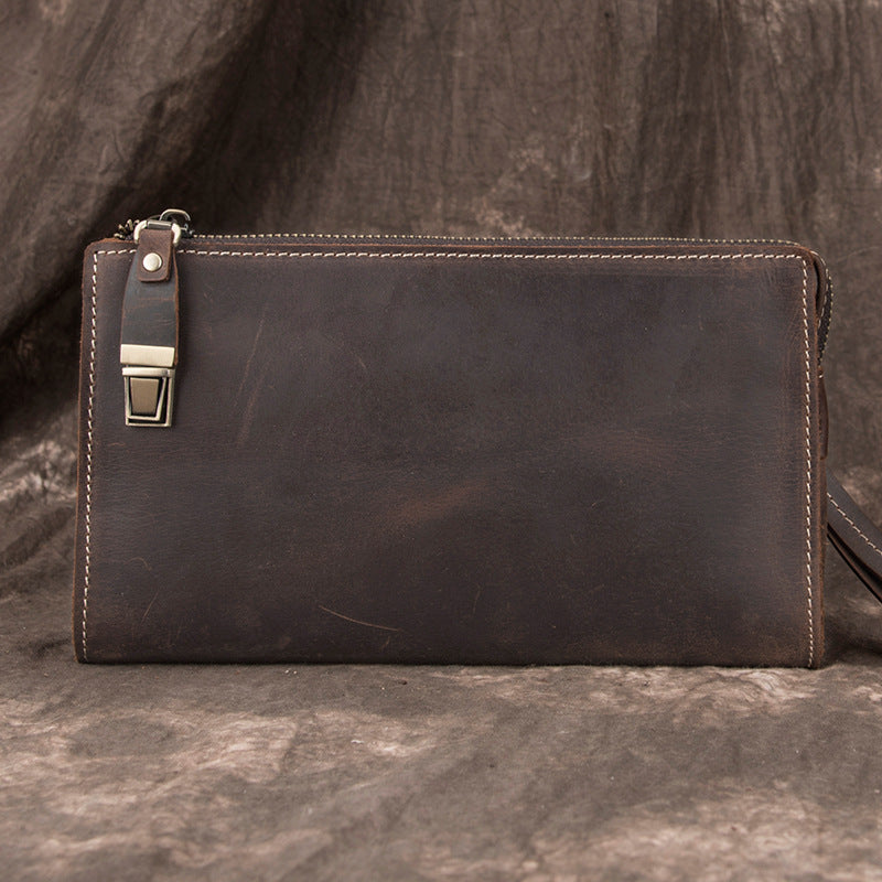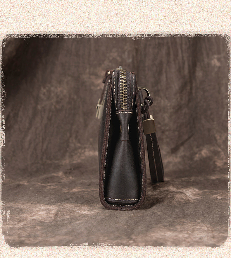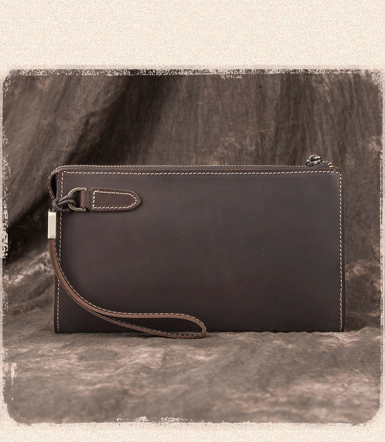 Design: Leather Wristlet Zip Clutch Wallet Mens Brown Wristlet Purse Leather Clutch Bags For Men